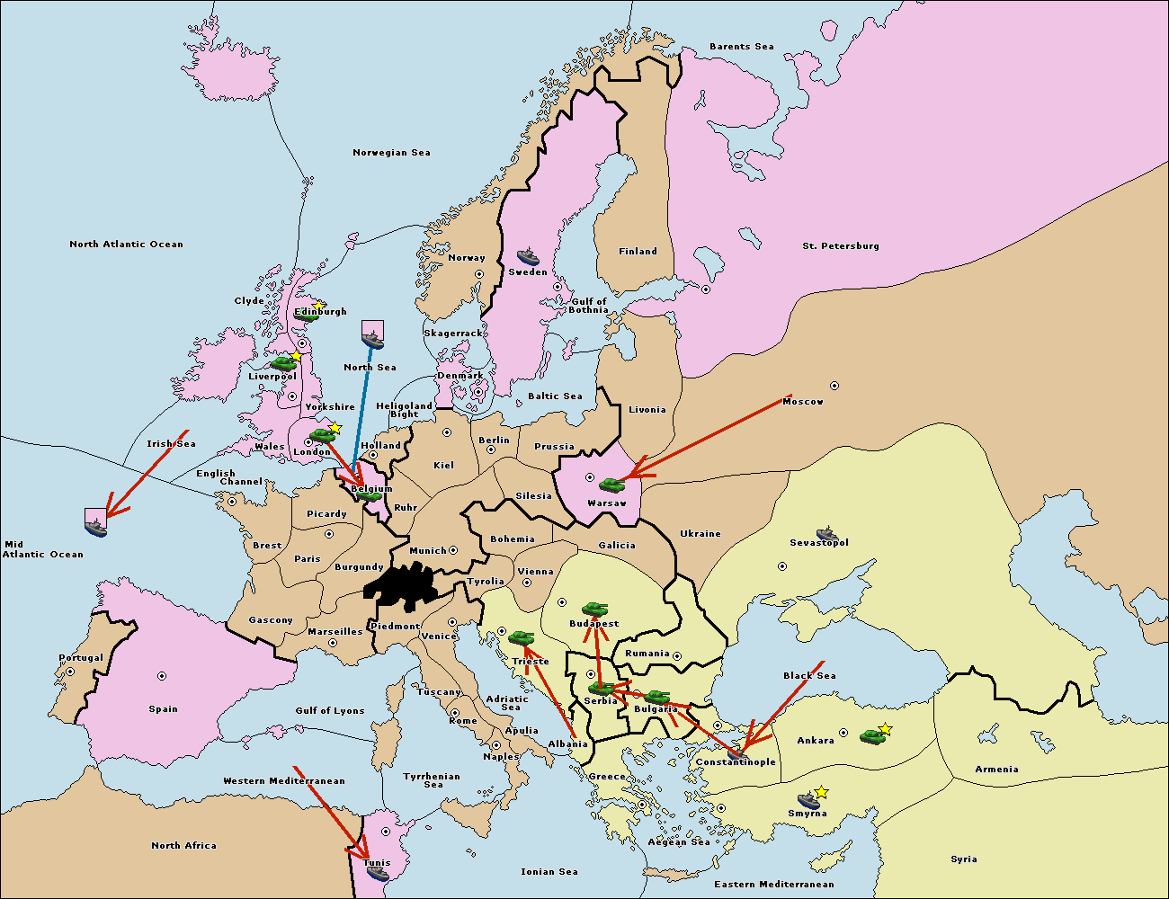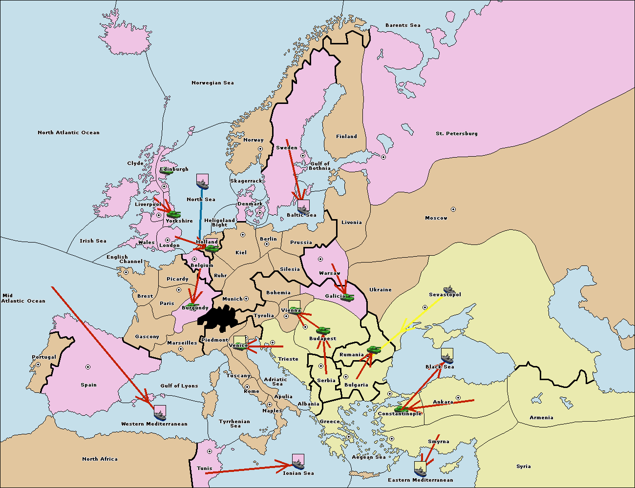 The fleet at Mid-Atlantic Ocean move to Western Mediterranean.