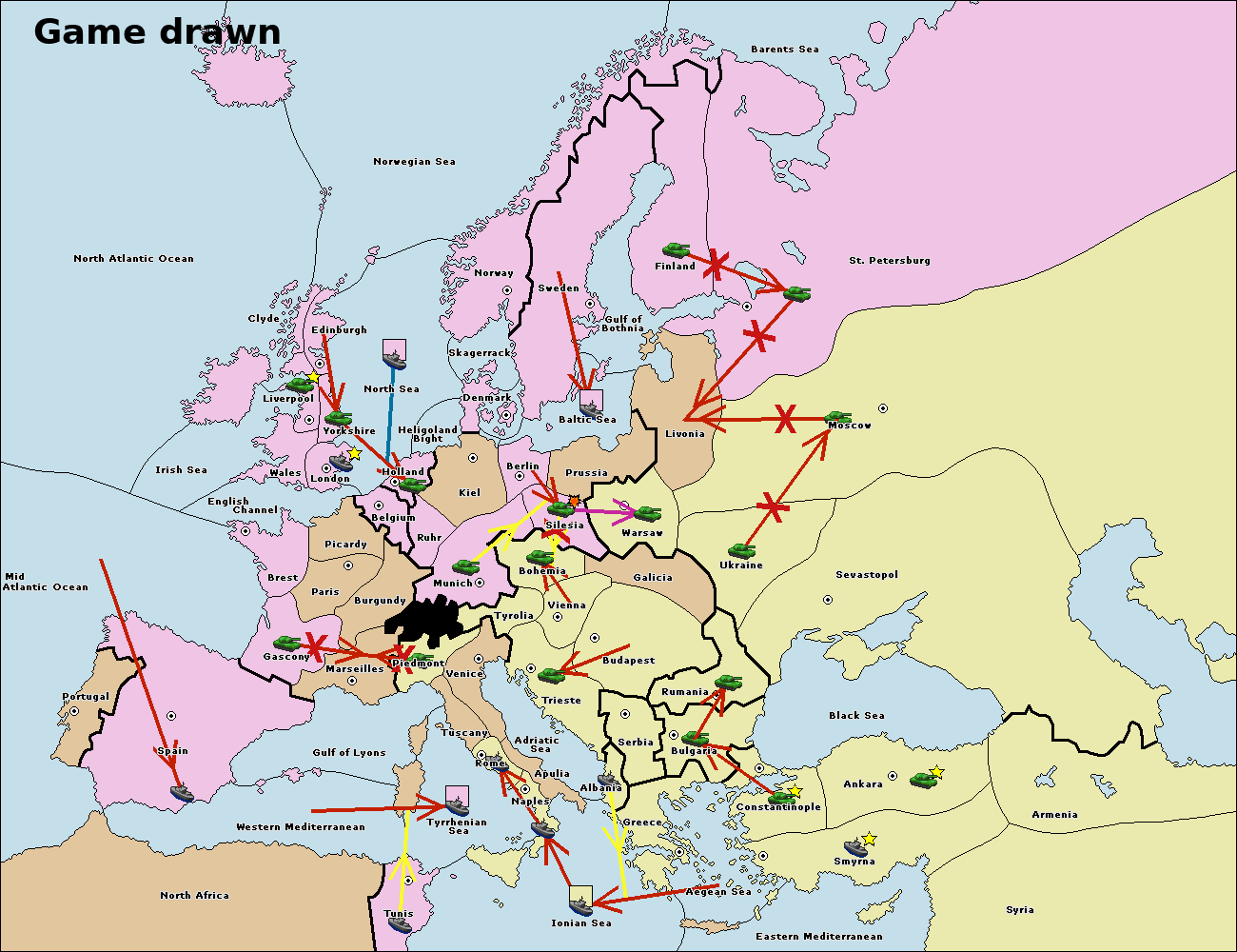 The fleet at Bulgaria (South Coast) move to Greece.