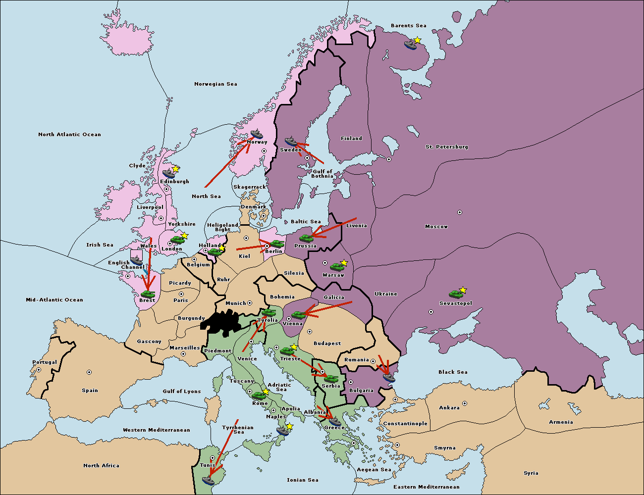 The fleet at Bulgaria (North Coast) move to Constantinople.