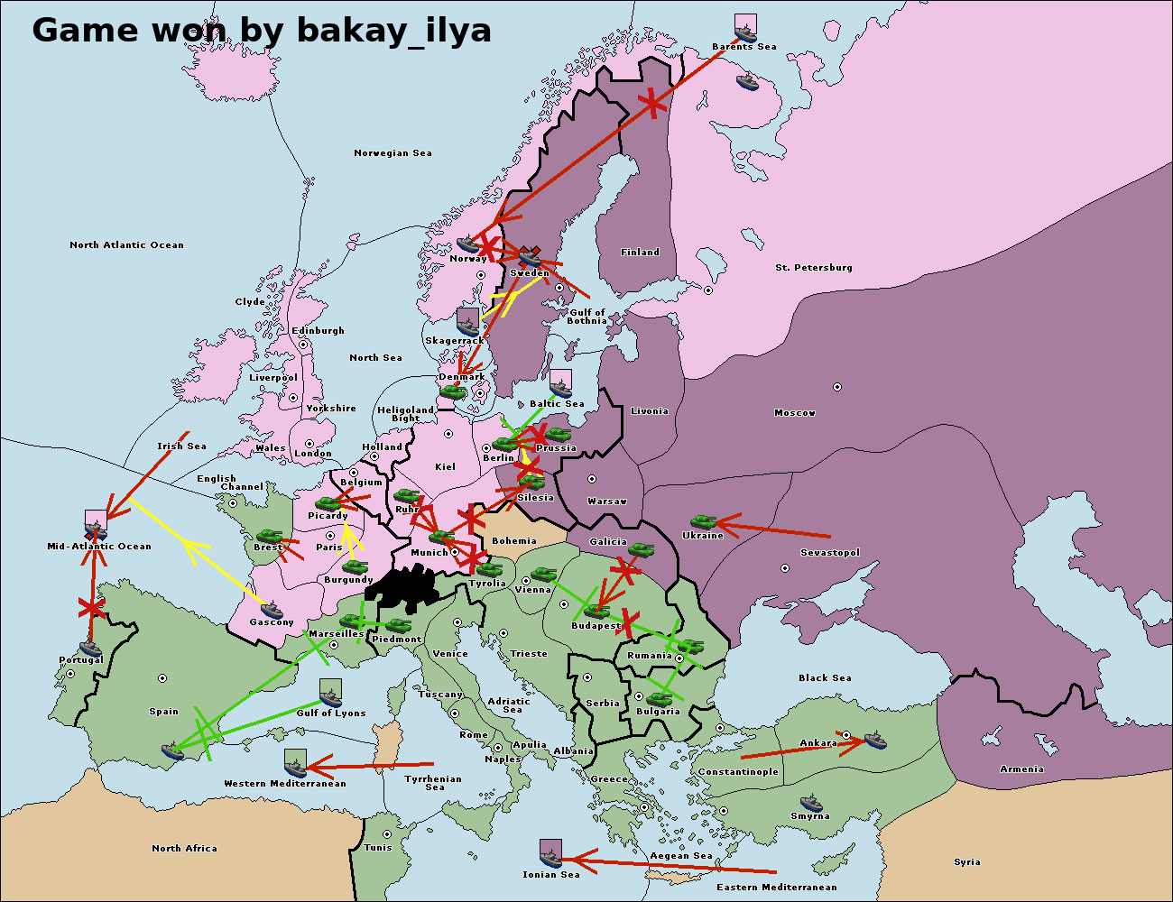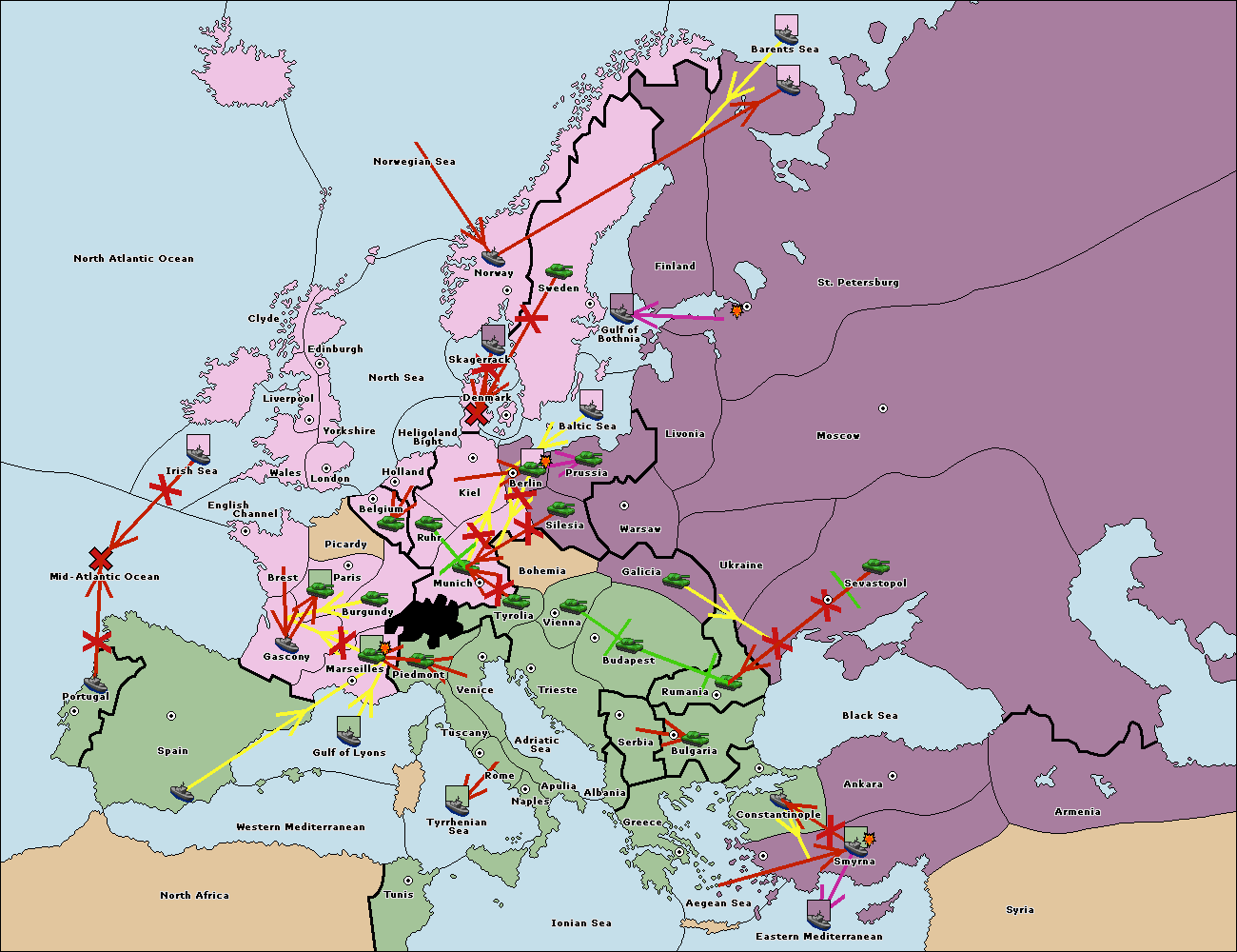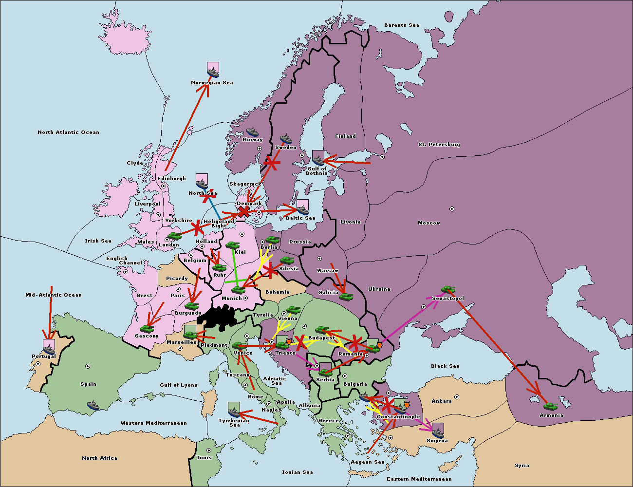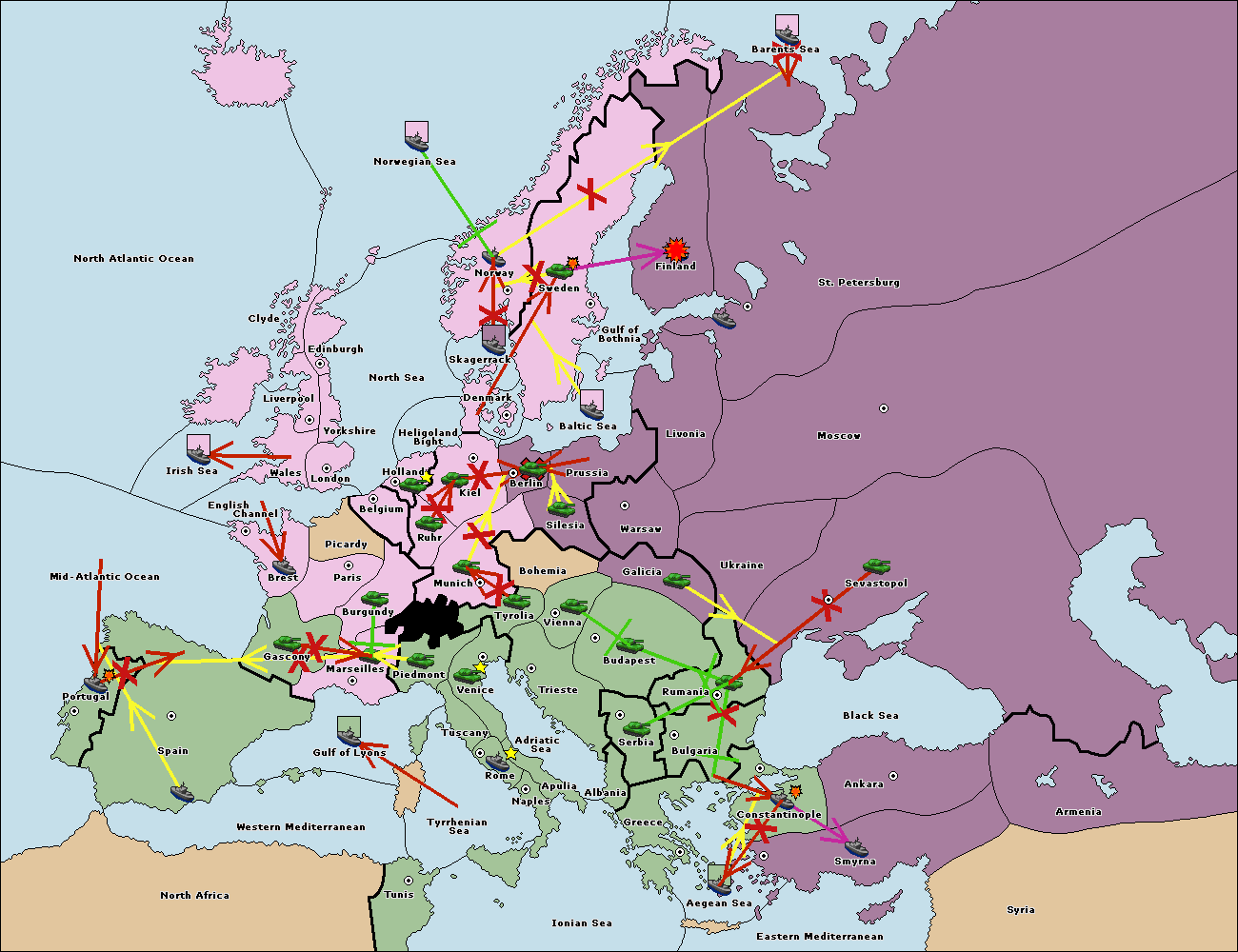 The fleet at Bulgaria (South Coast) support move to Constantinople from Aegean Sea.