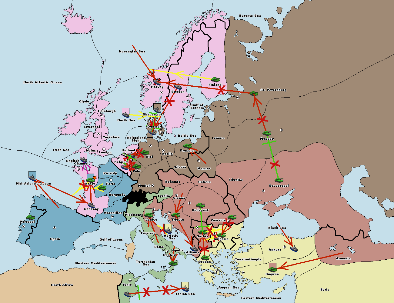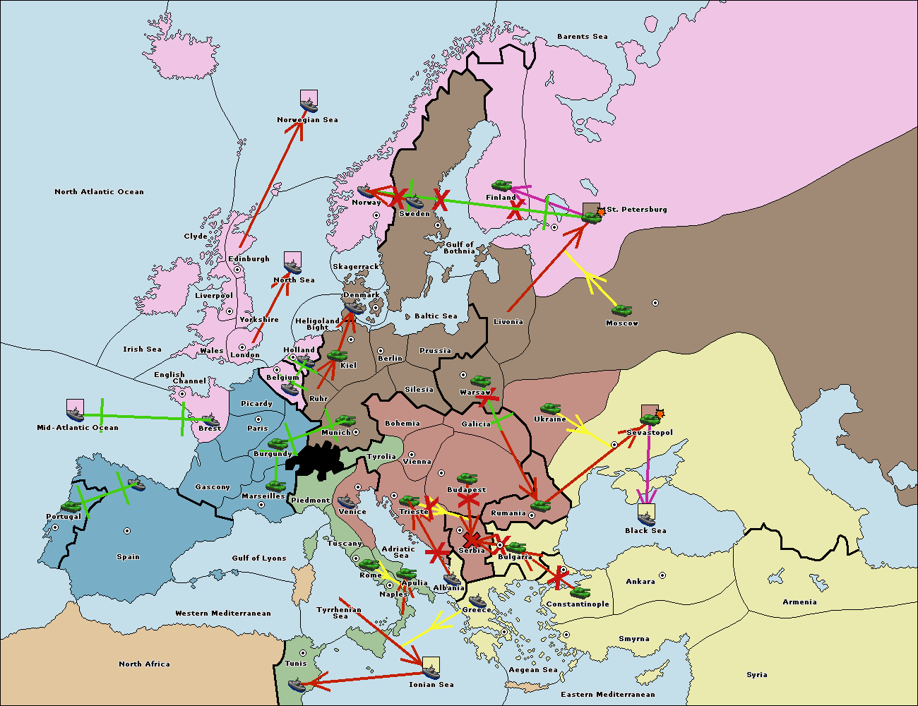 The fleet at Sevastopol support move to Rumania from Galicia.