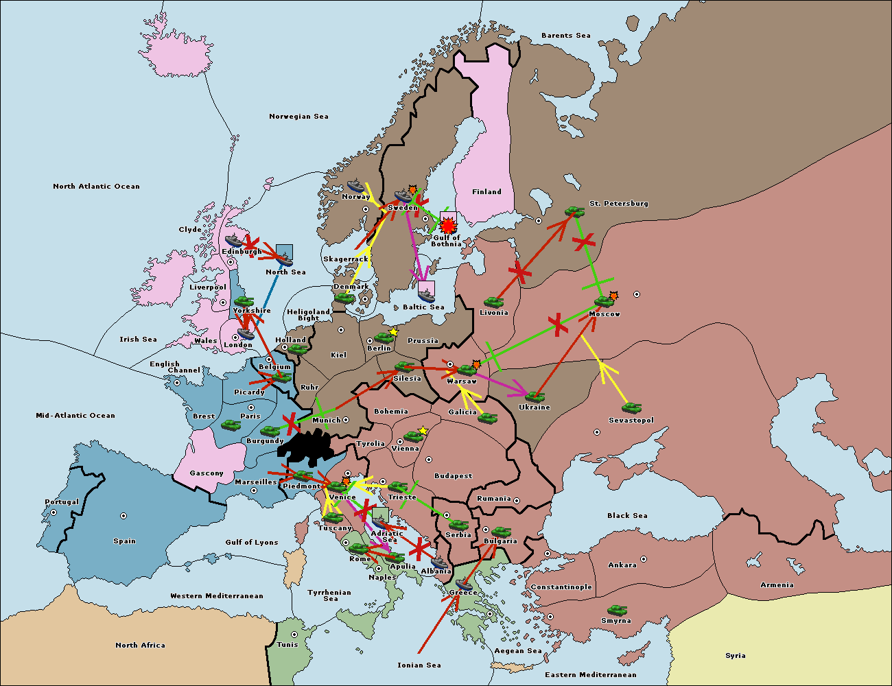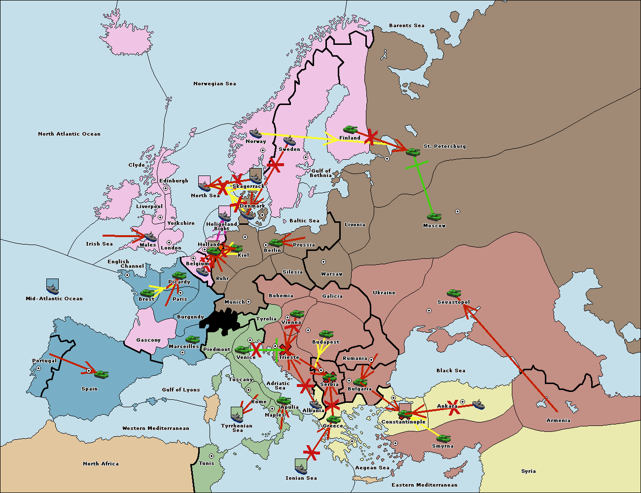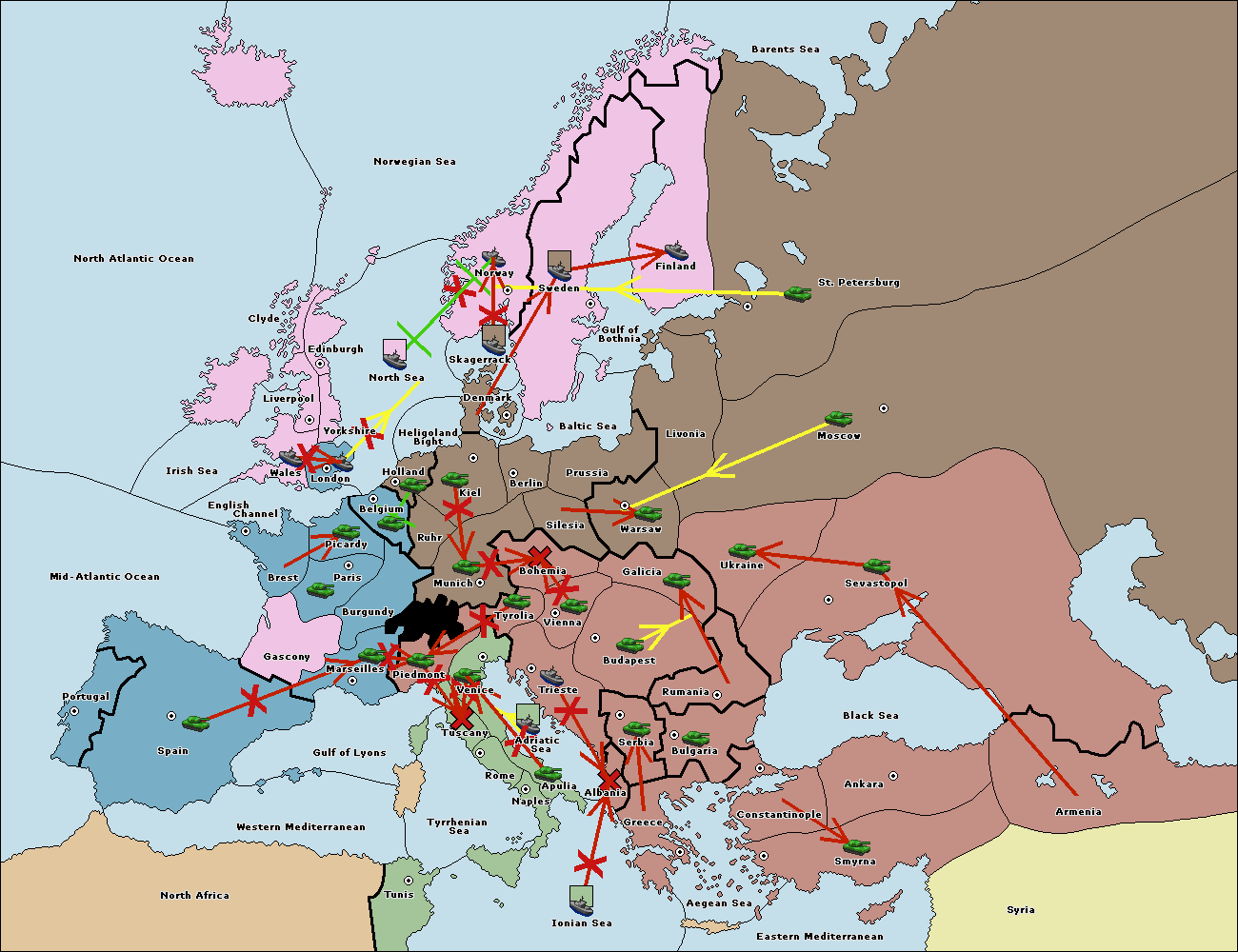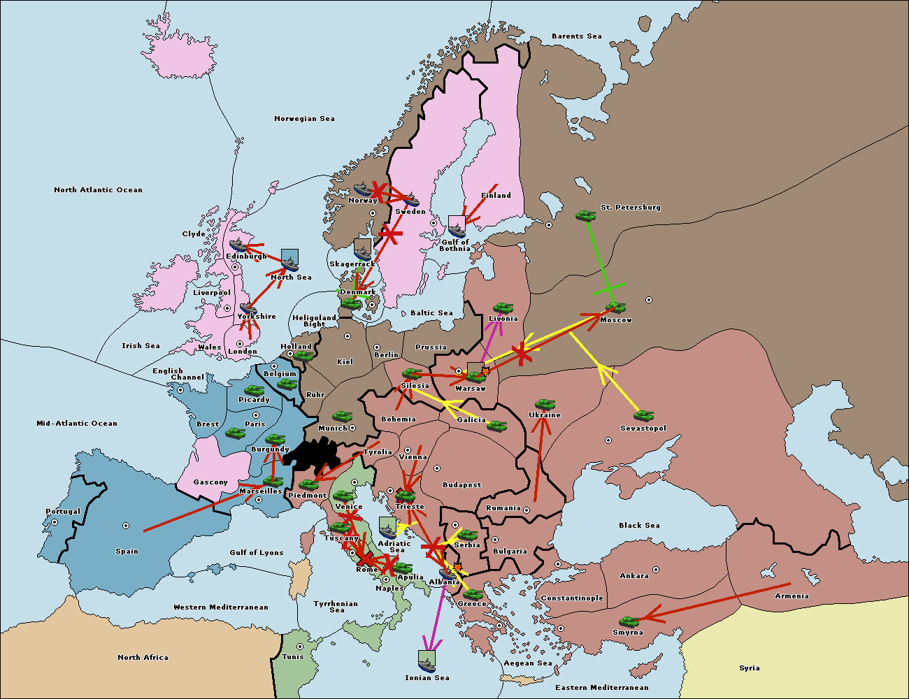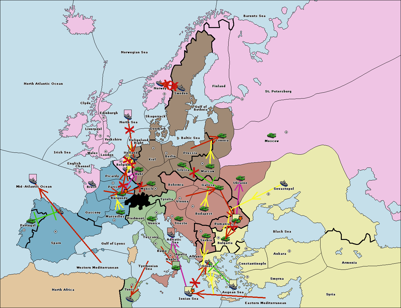 The fleet at Mid-Atlantic Ocean move to Western Mediterranean.