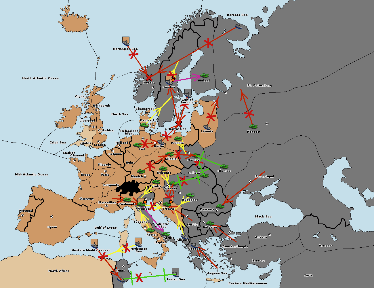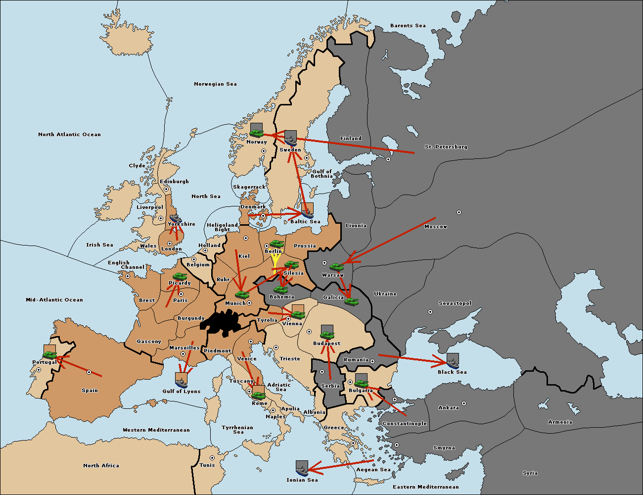 The fleet at Berlin move to Baltic Sea.