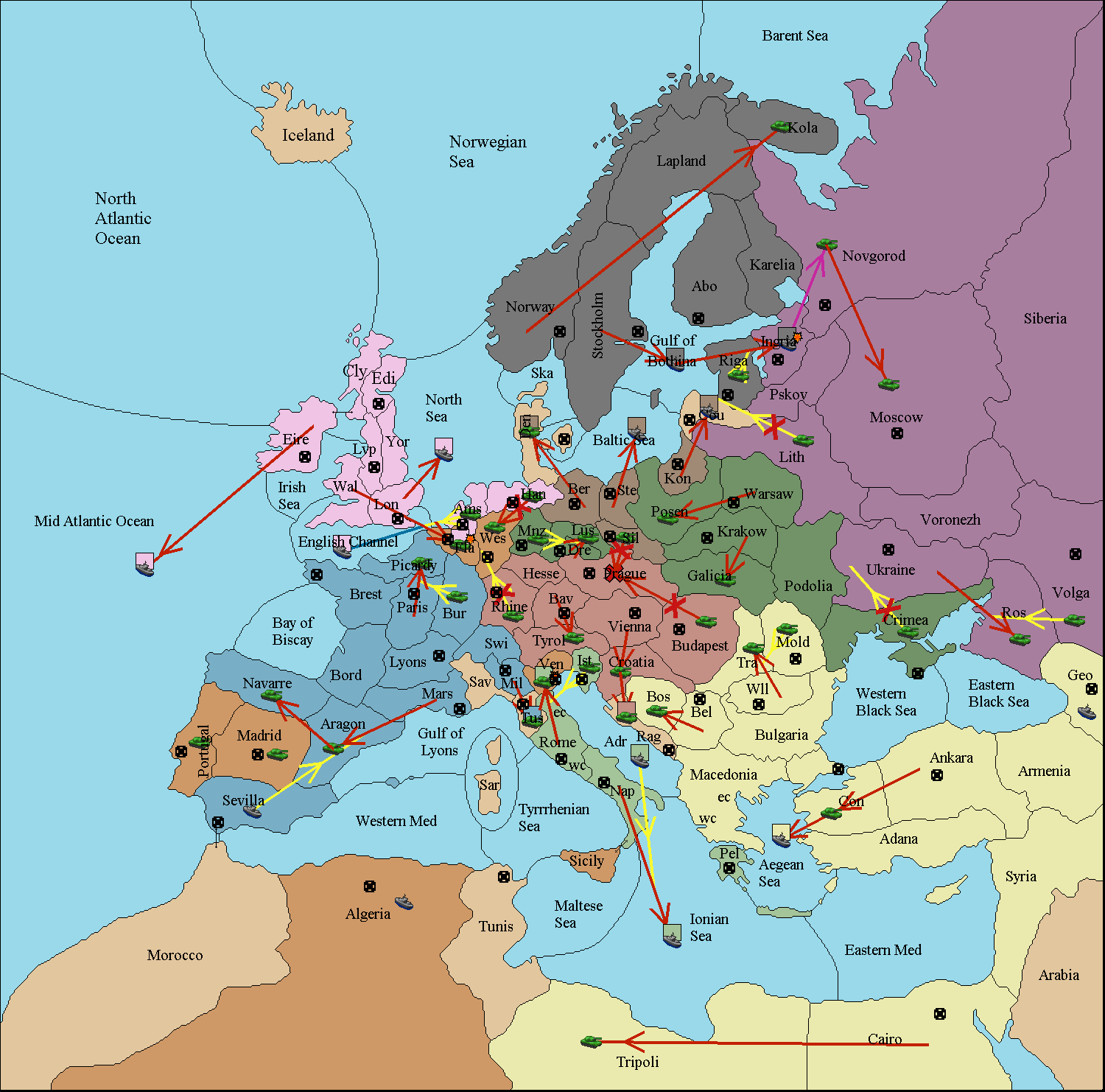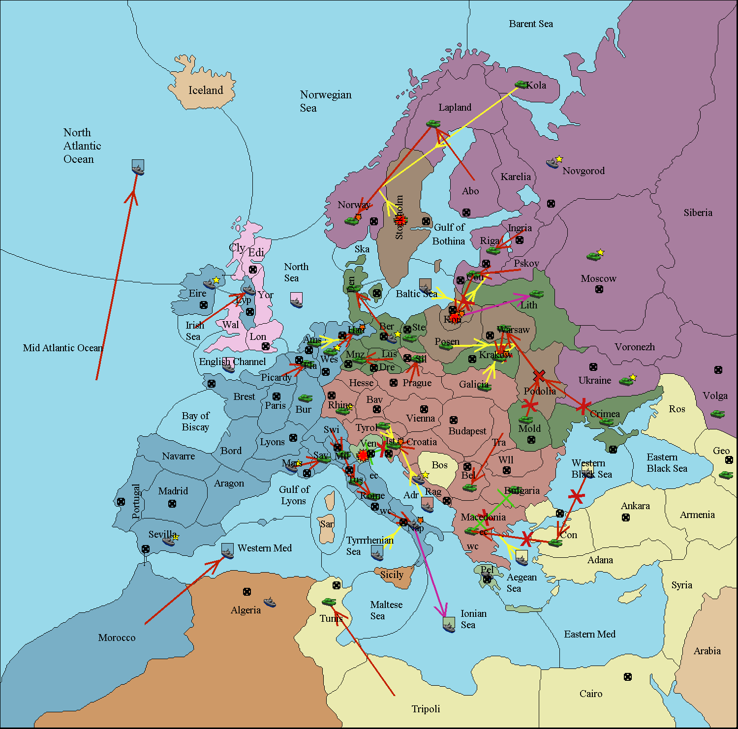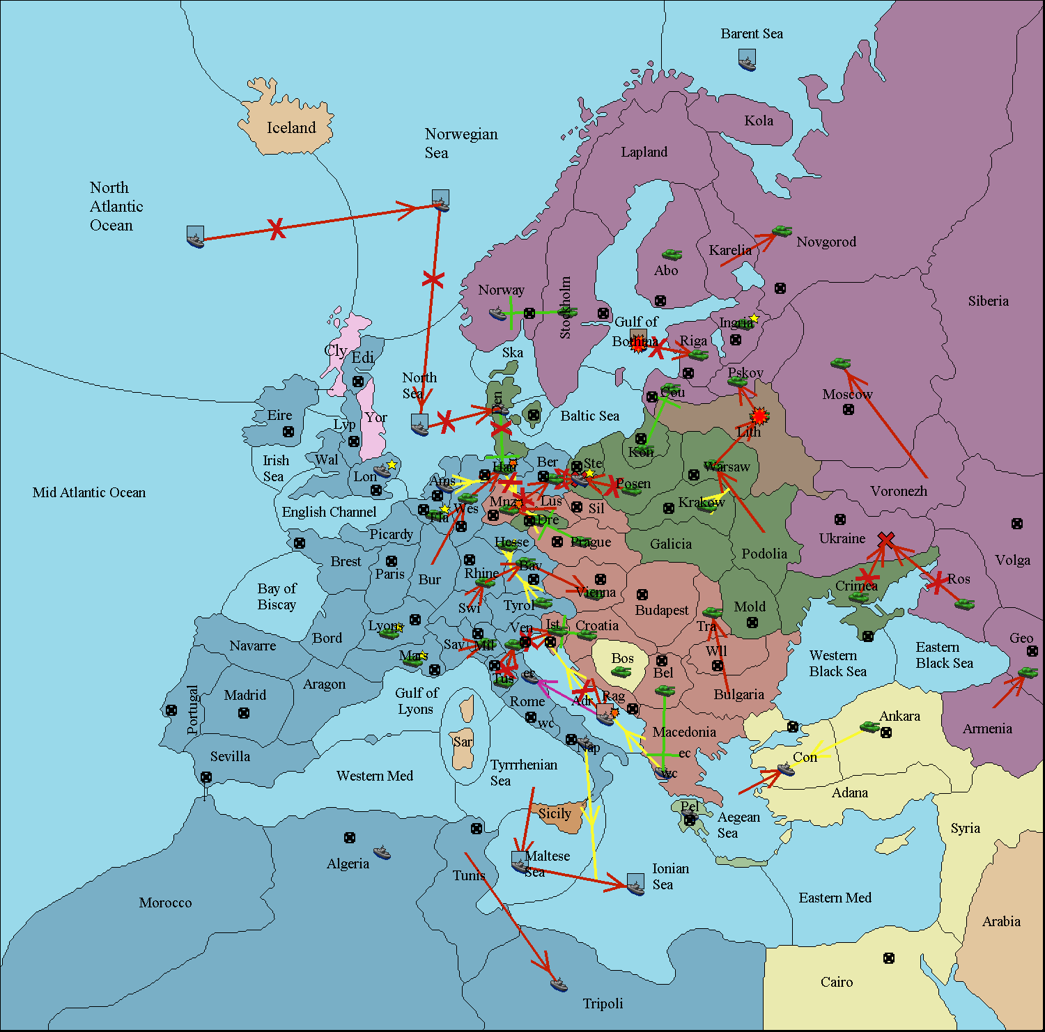The fleet at Rome (East Coast) move to Venice.