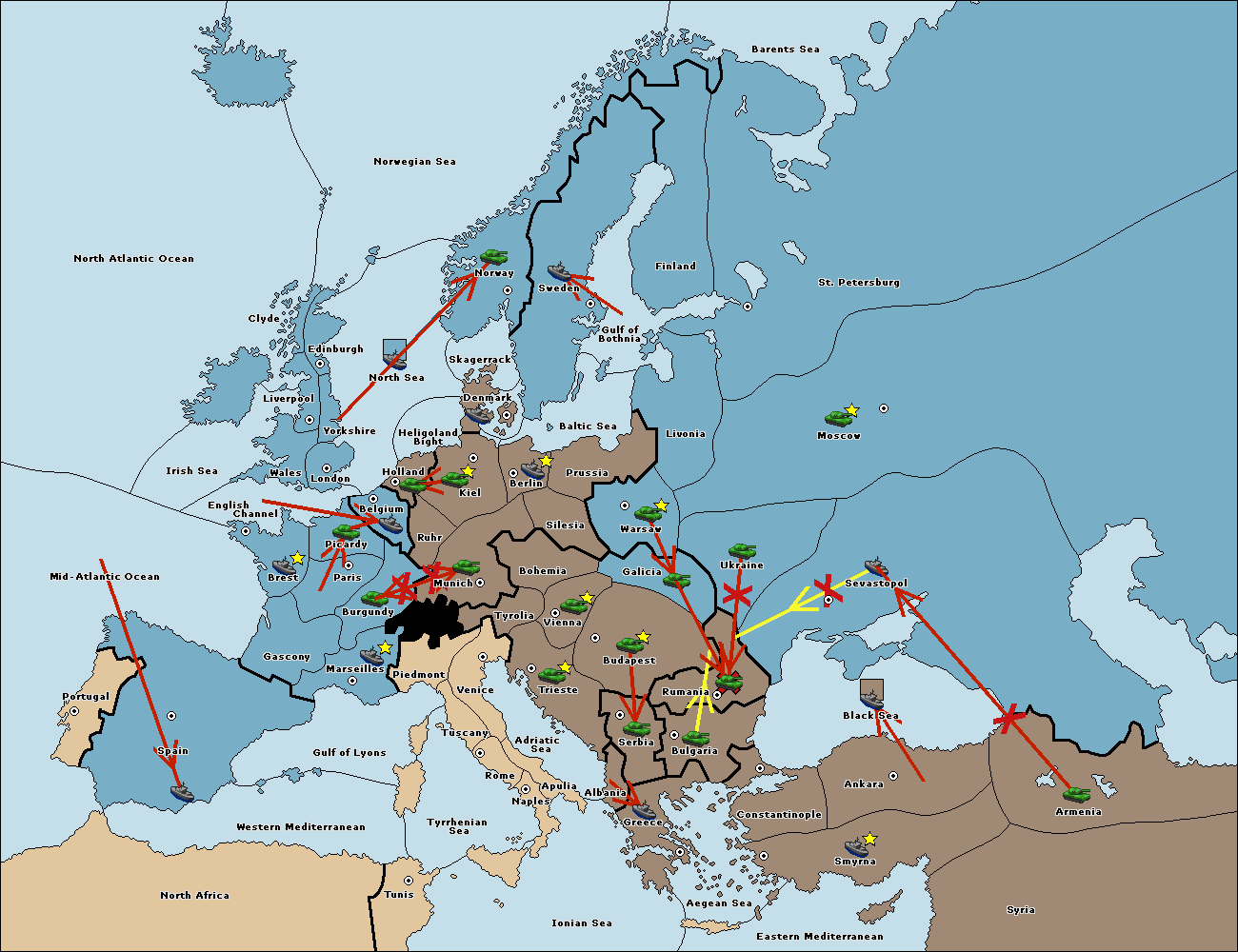The fleet at Sevastopol support move to Rumania from Galicia.