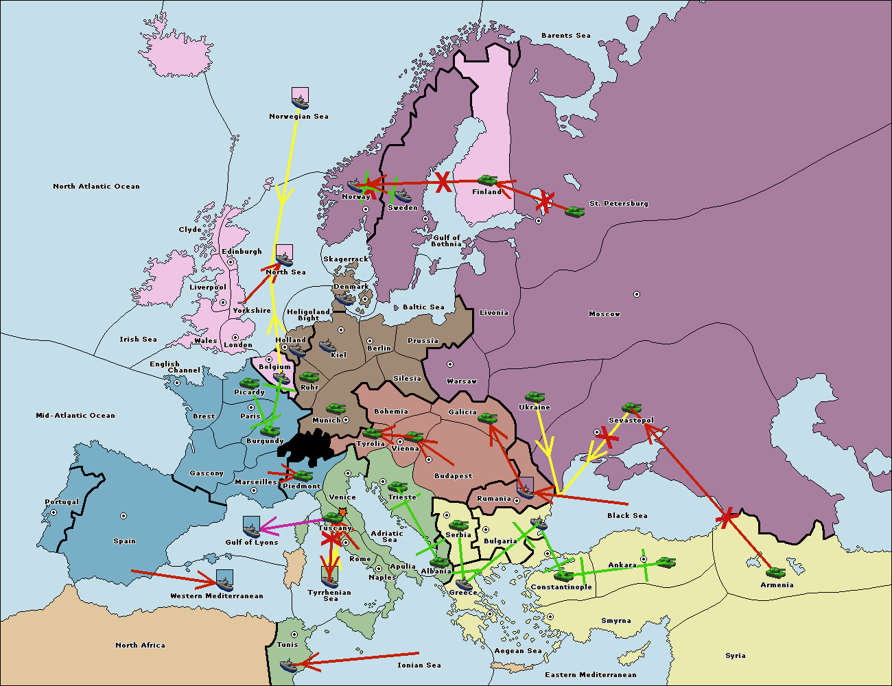 The fleet at Bulgaria (North Coast) support hold to Constantinople.