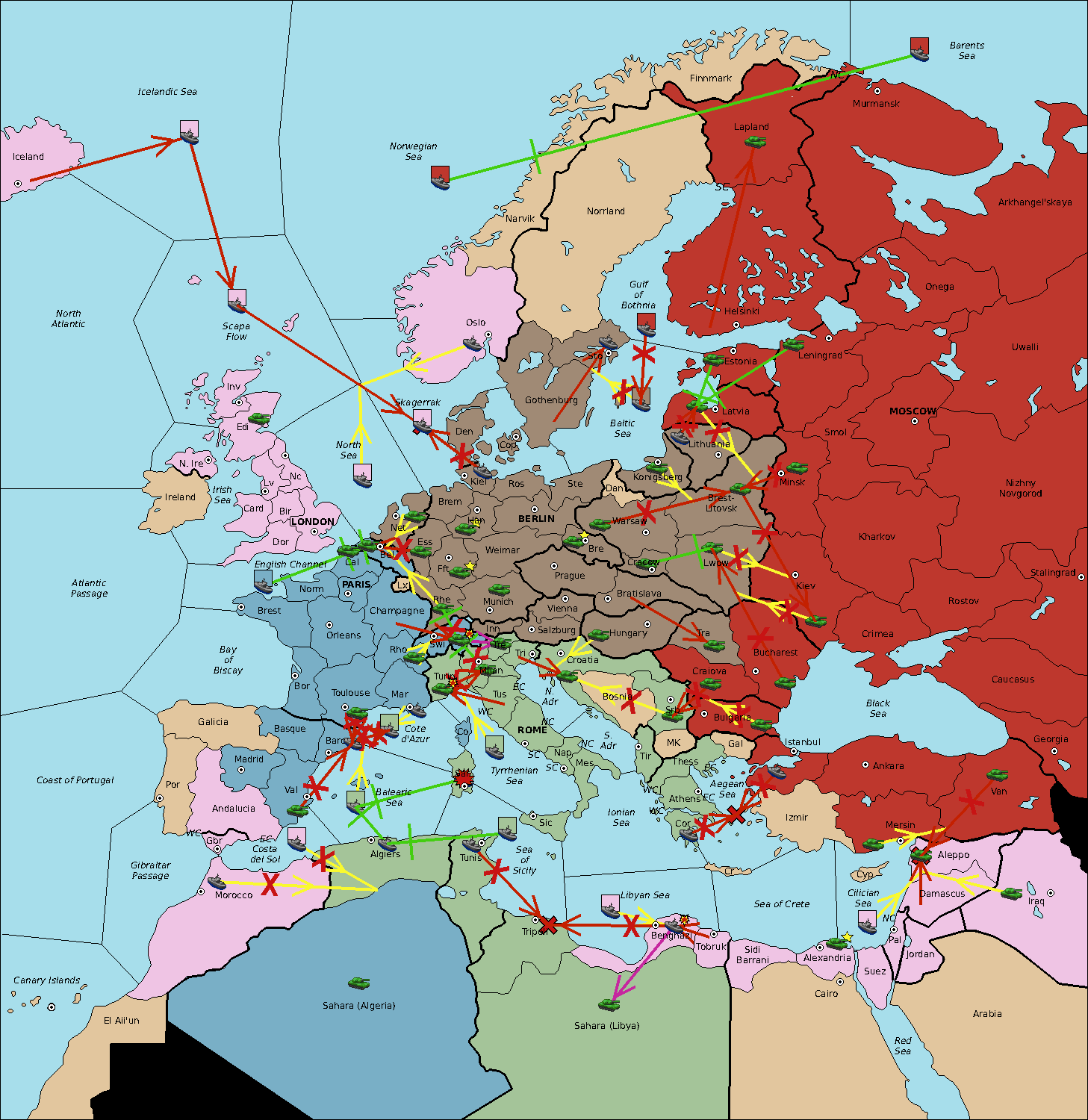 The fleet at Algiers support move to Balearic Sea from Sardinia.