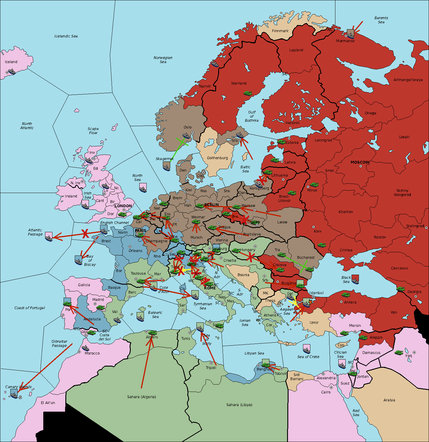 The fleet at Sea of Sicily support move to Algiers from Balearic Sea.