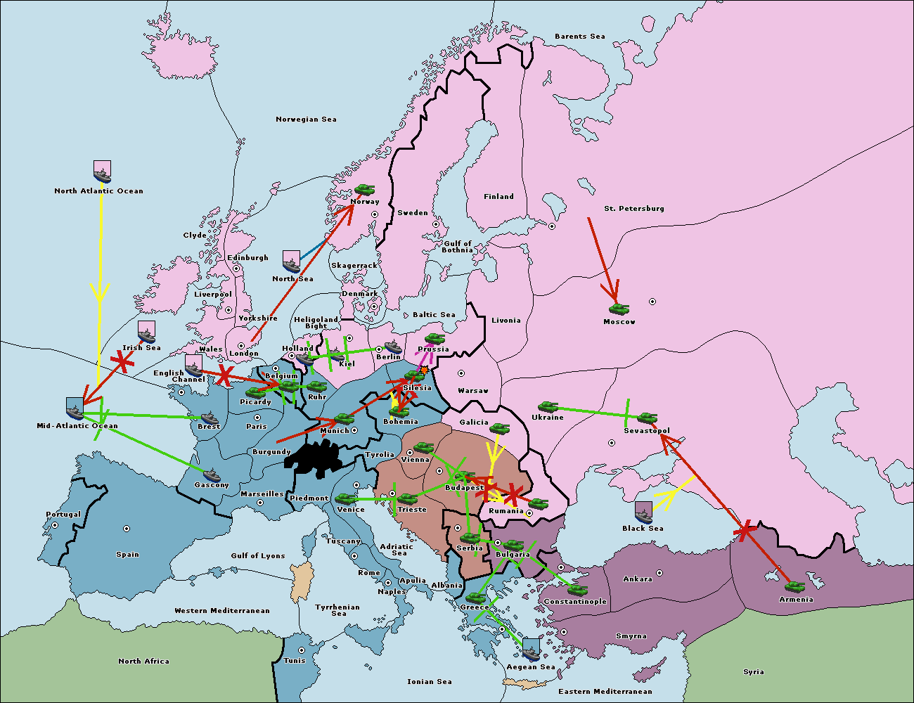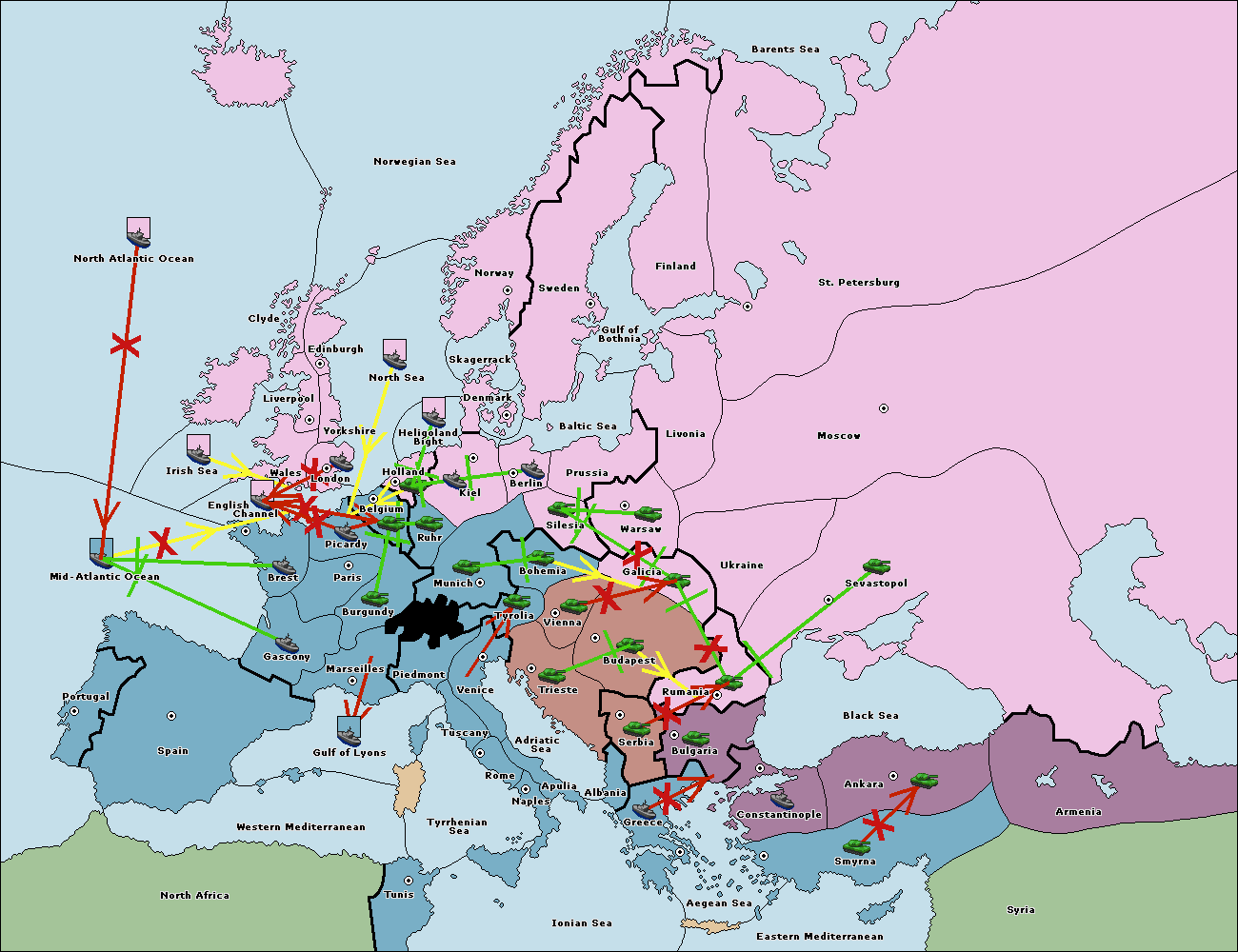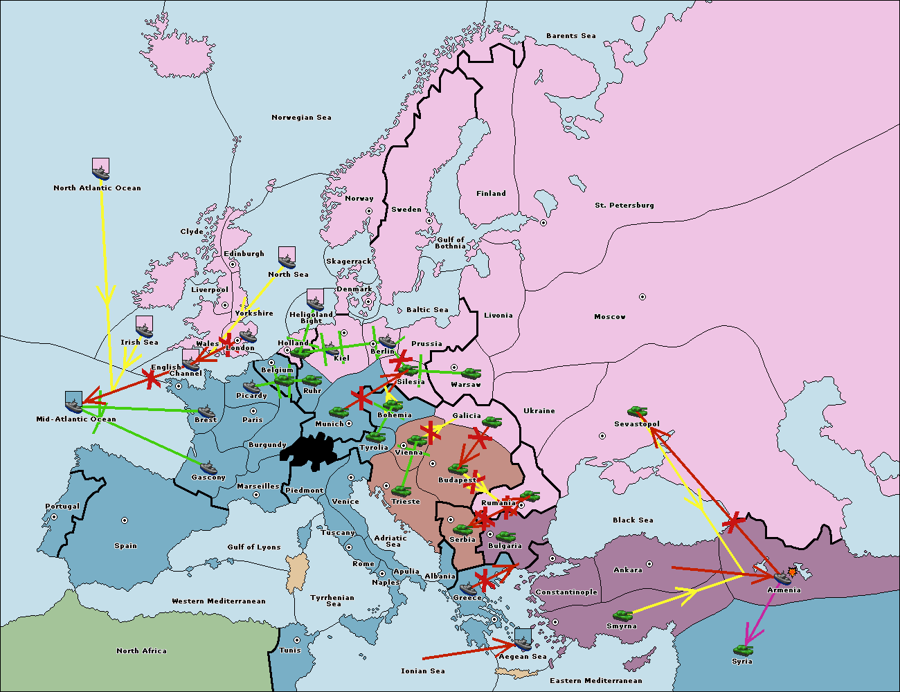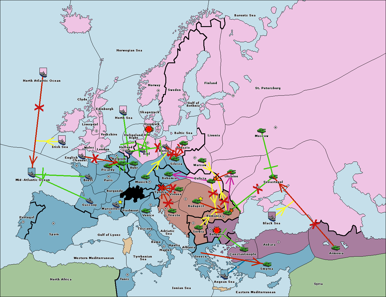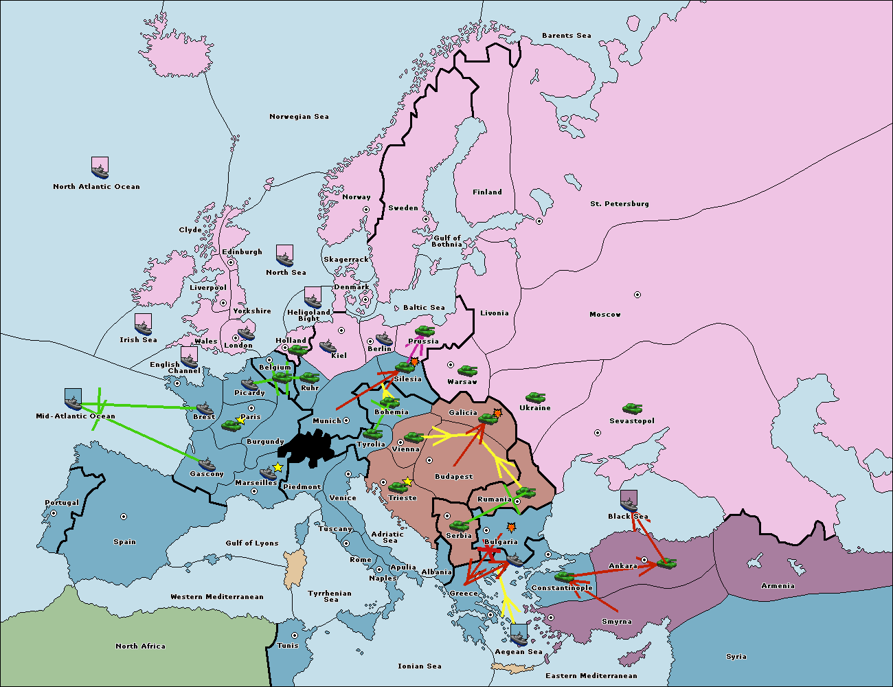 The fleet at Bulgaria (South Coast) move to Constantinople.
