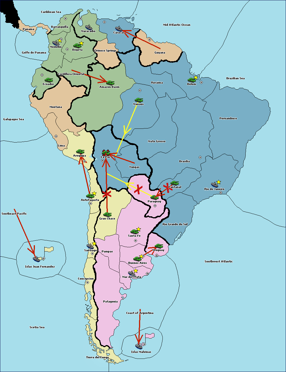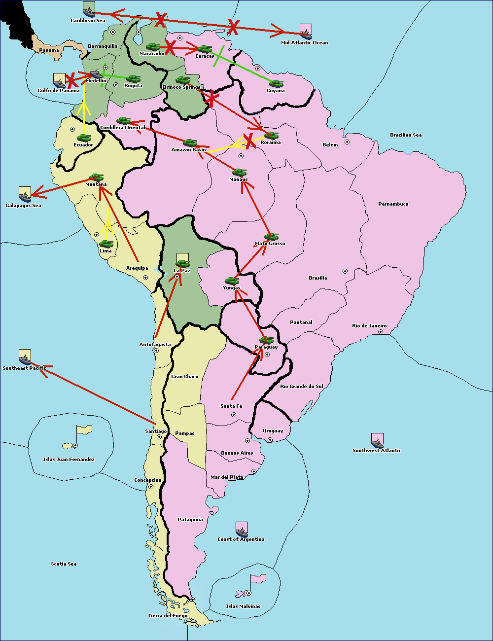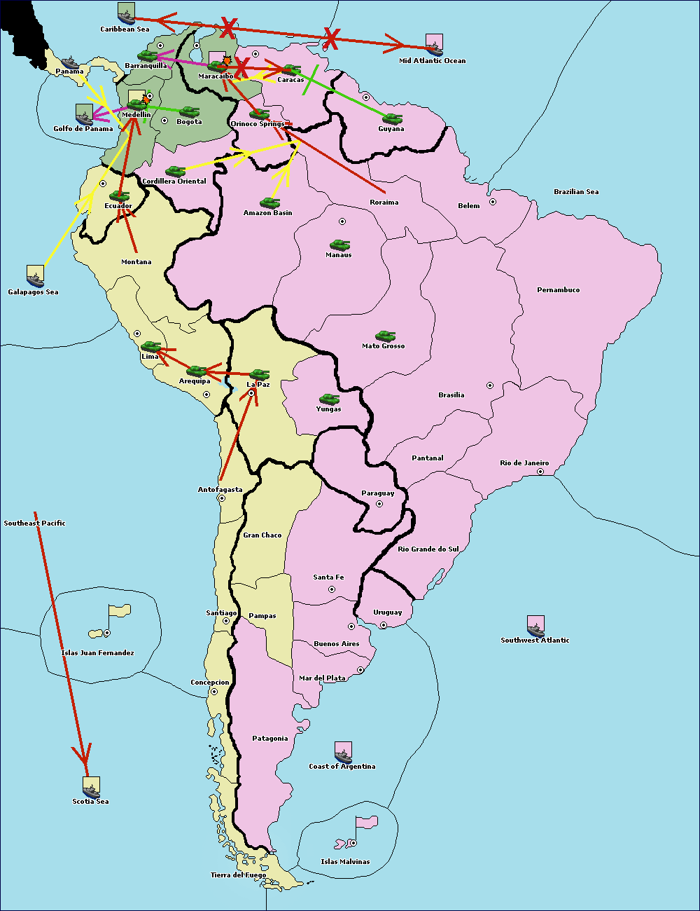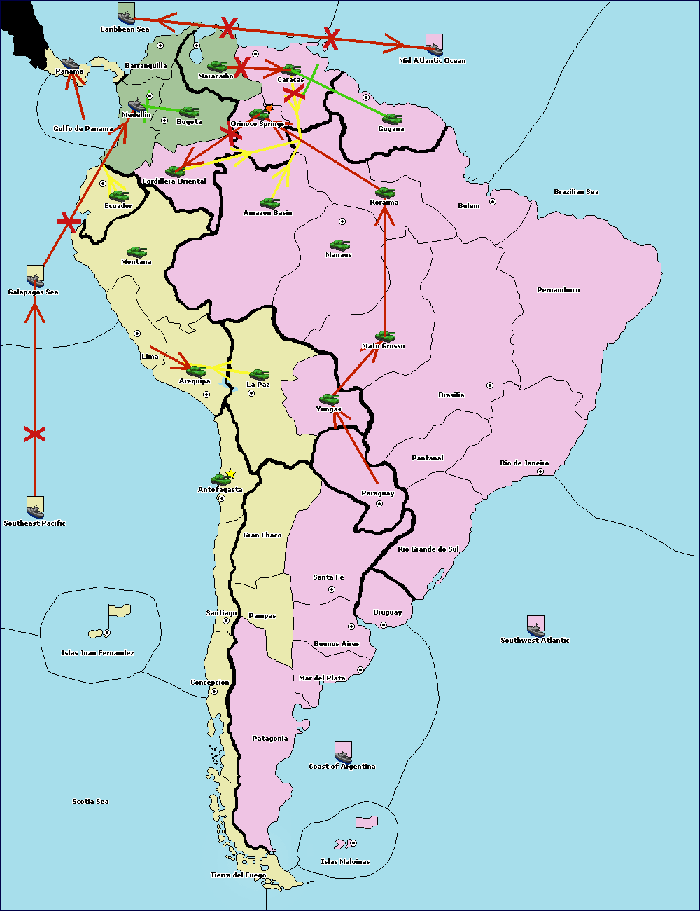 The army at Orinoco Springs support hold to Amazon Basin.