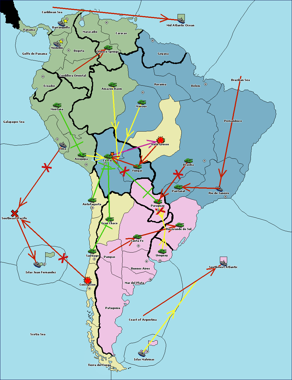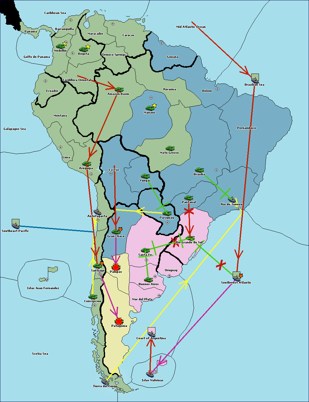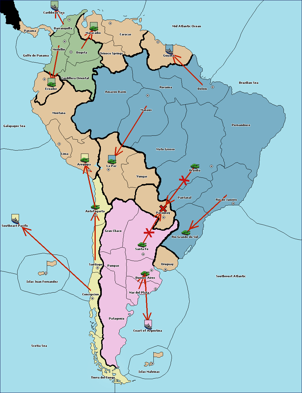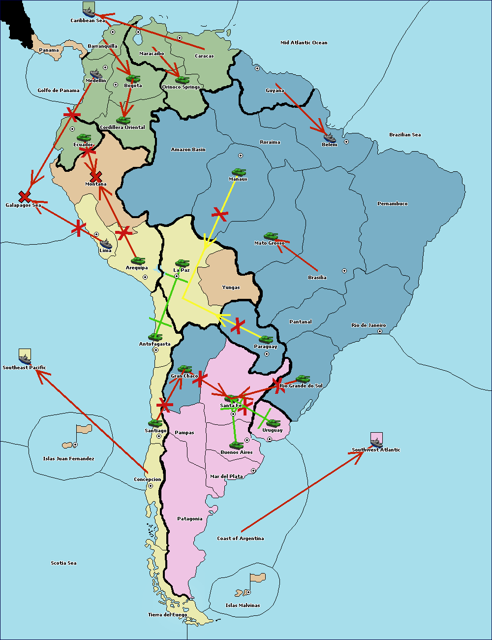The army at Orinoco Springs move to Amazon Basin.