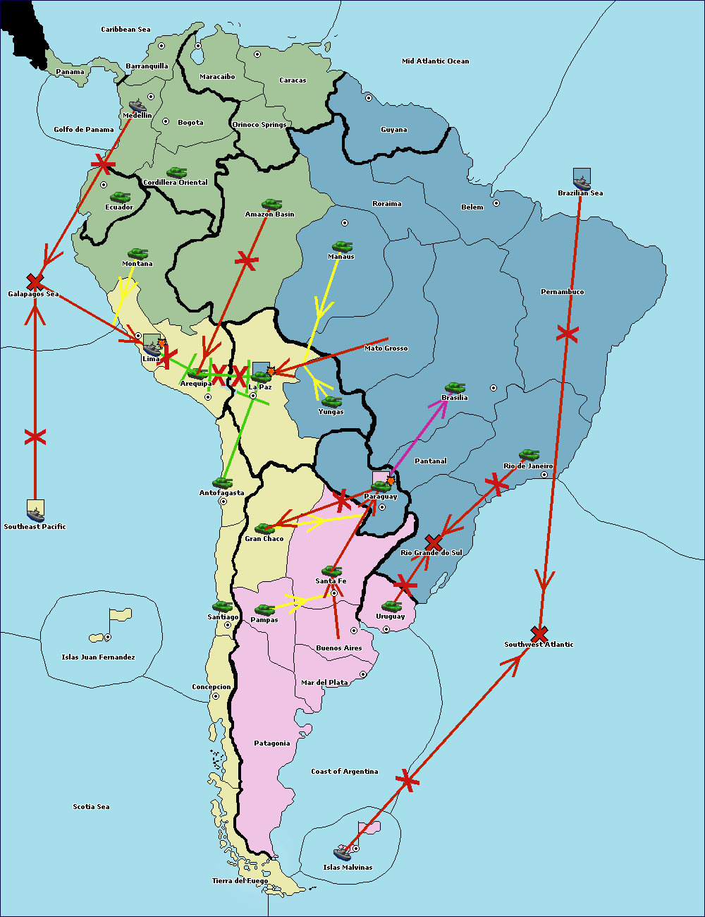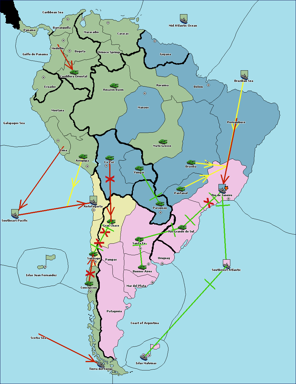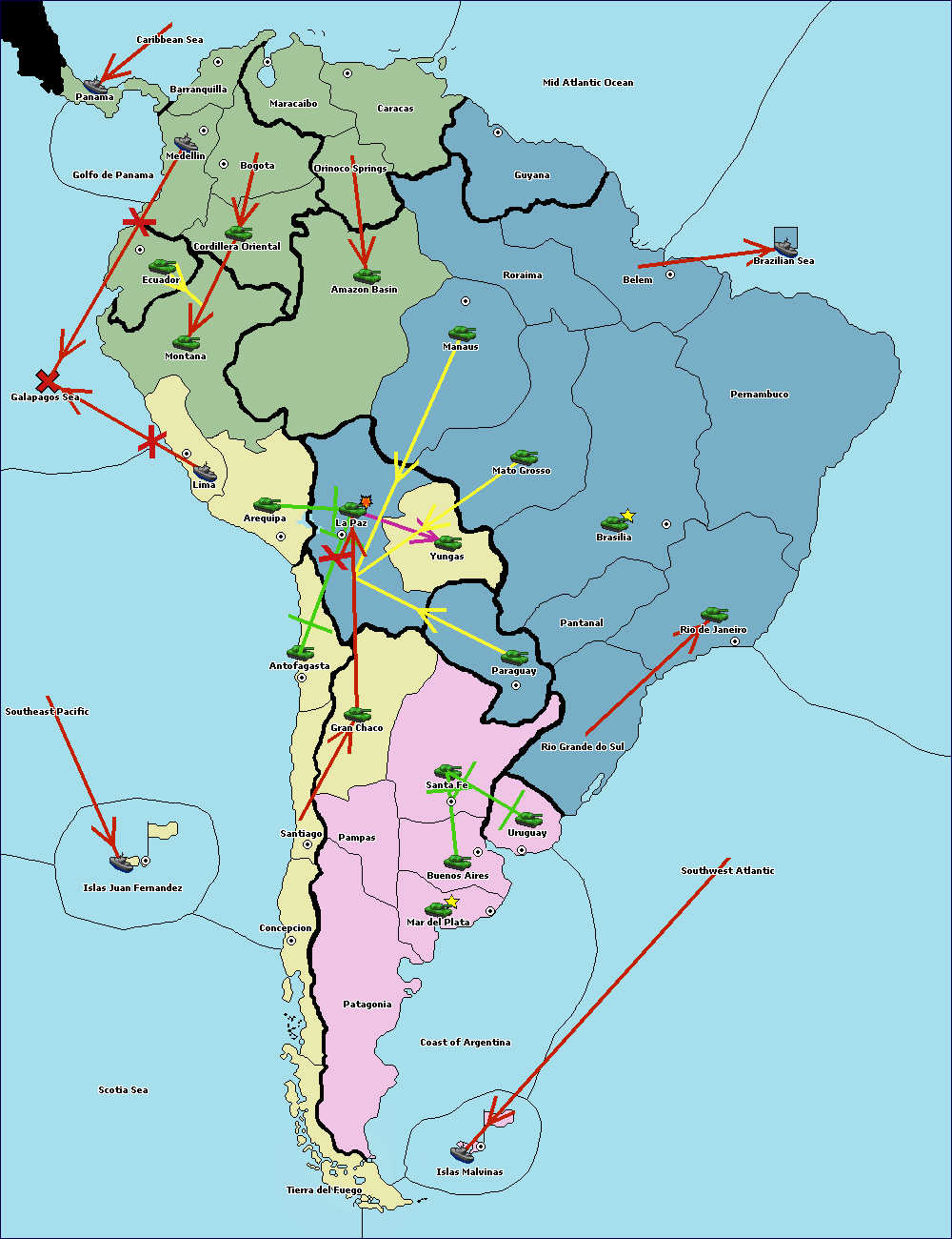 The army at Orinoco Springs move to Amazon Basin.