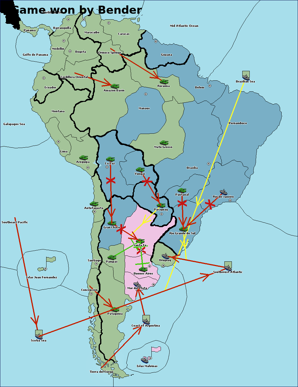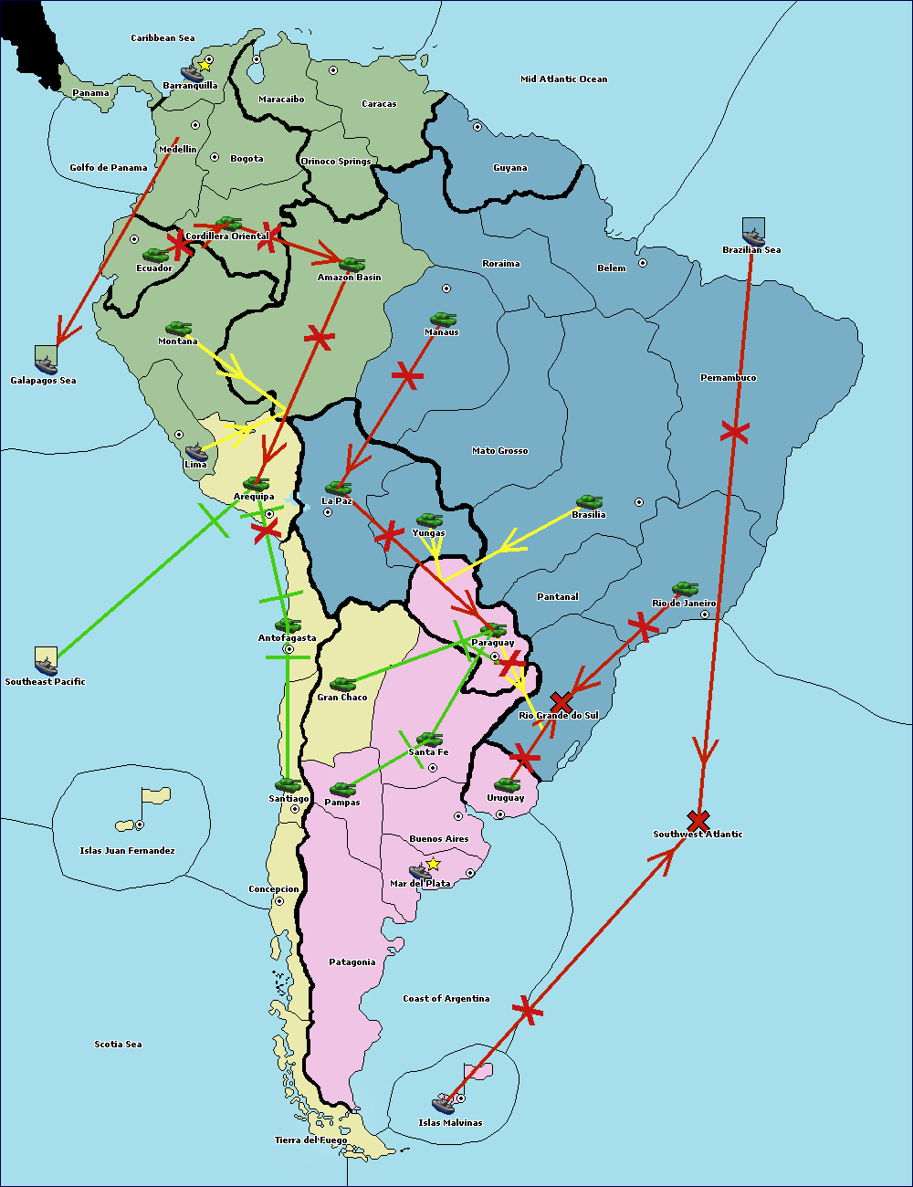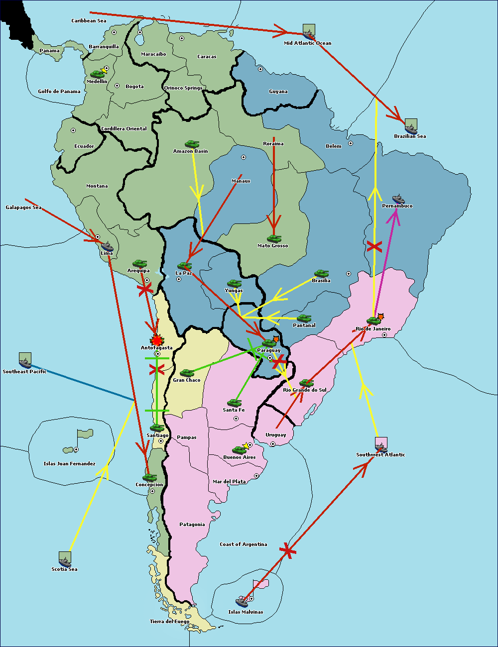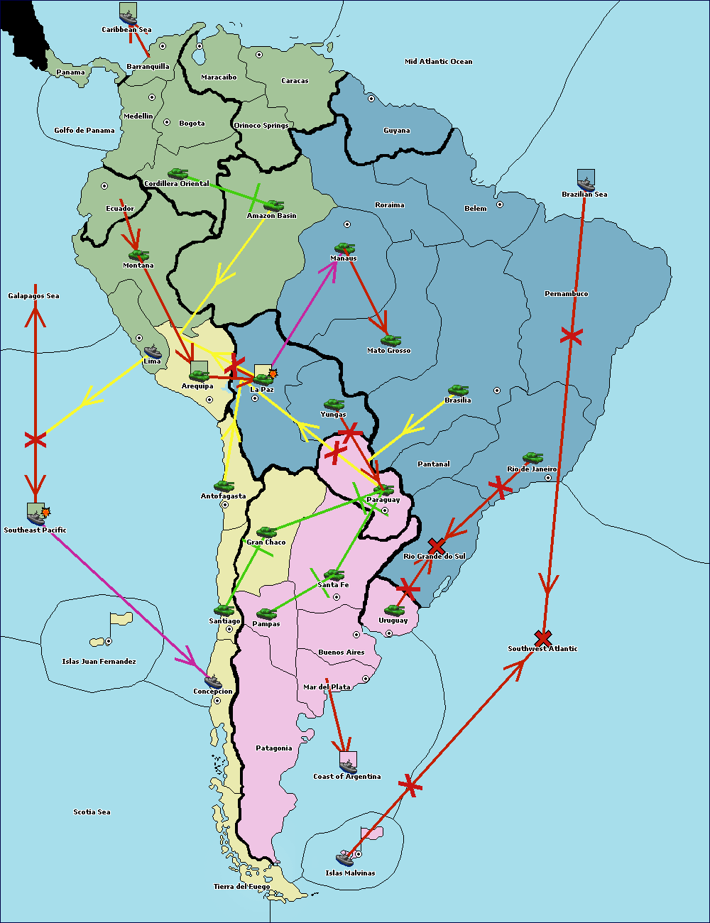 The army at Orinoco Springs move to Amazon Basin.