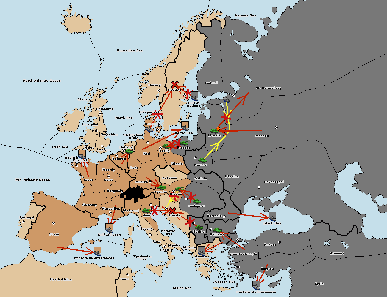 The fleet at Bulgaria (South Coast) move to Greece.
