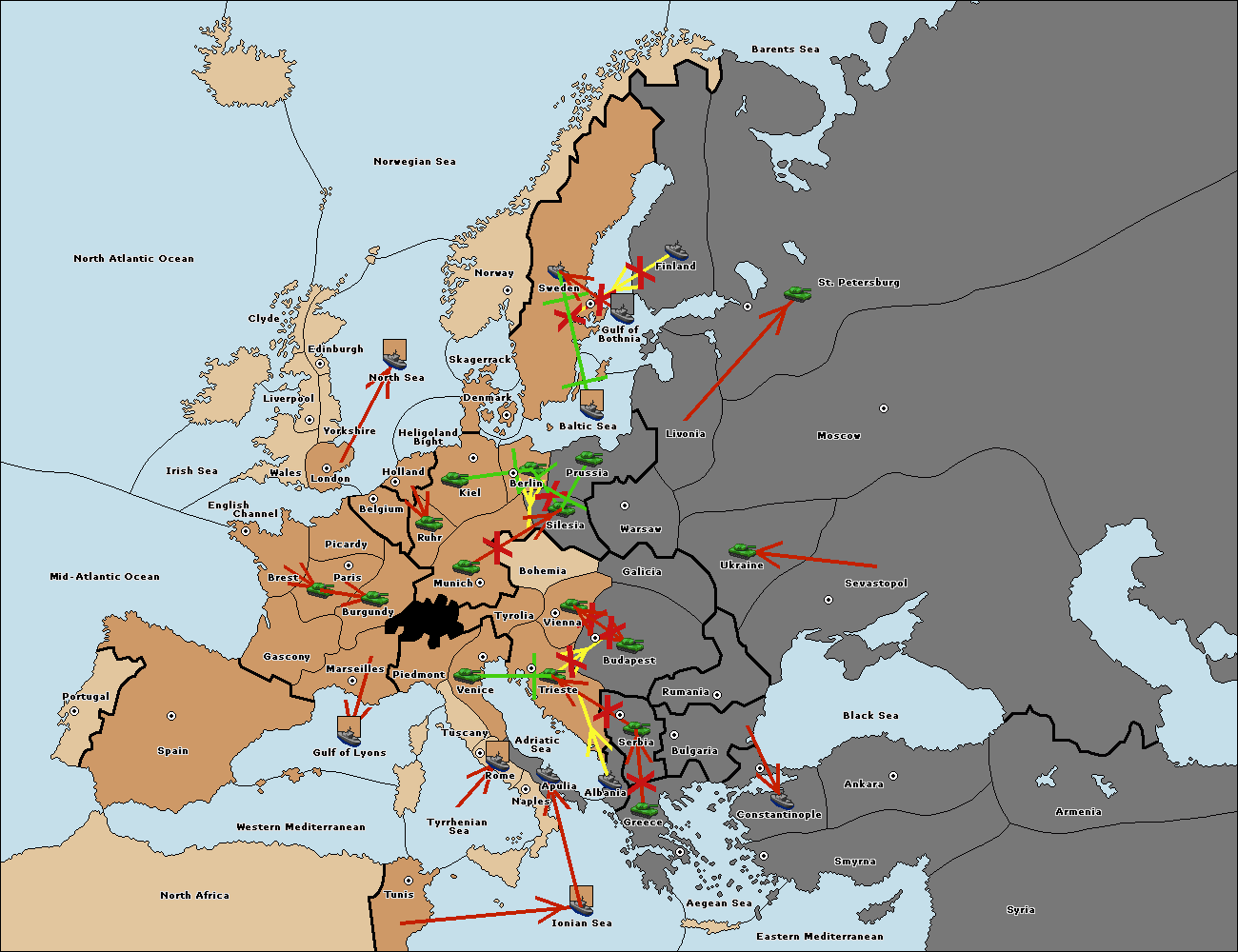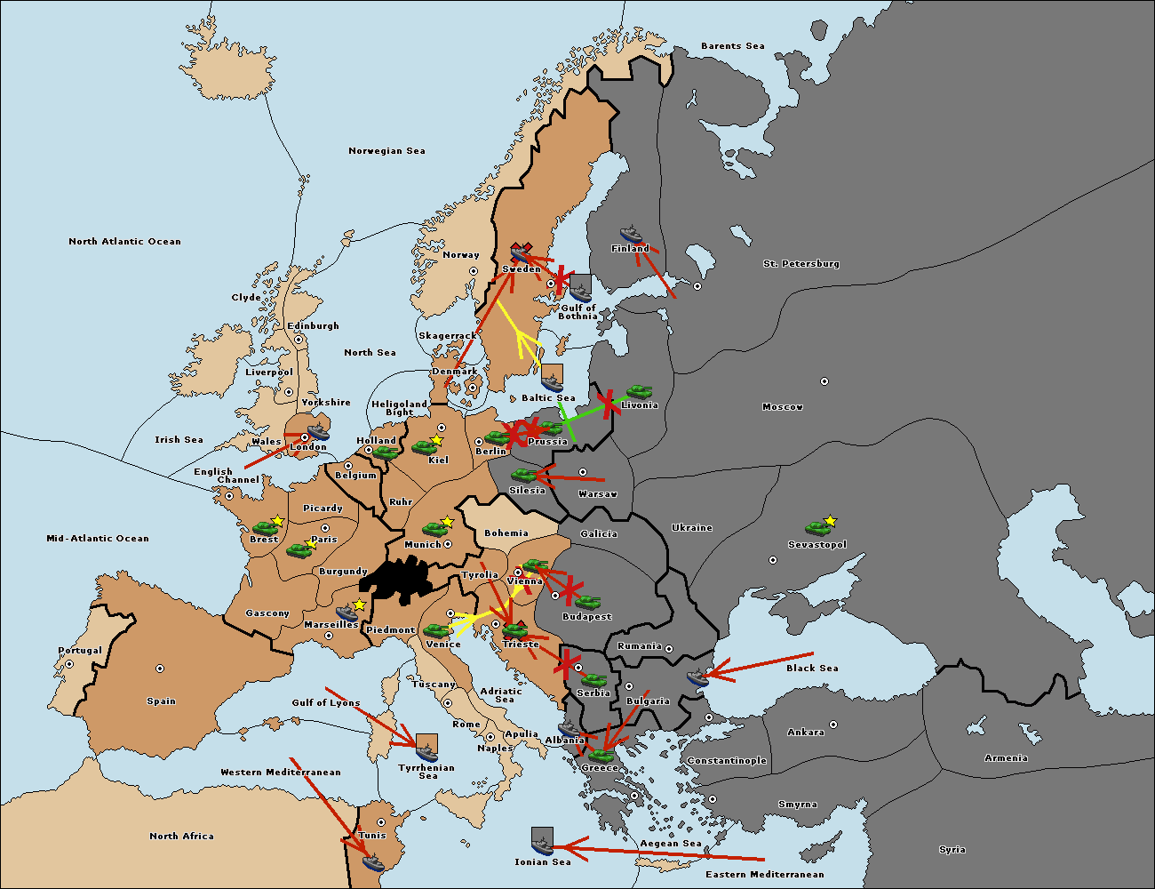 The fleet at Bulgaria (North Coast) move to Constantinople.