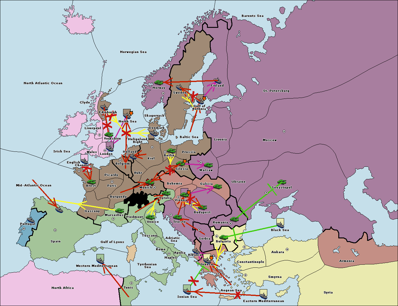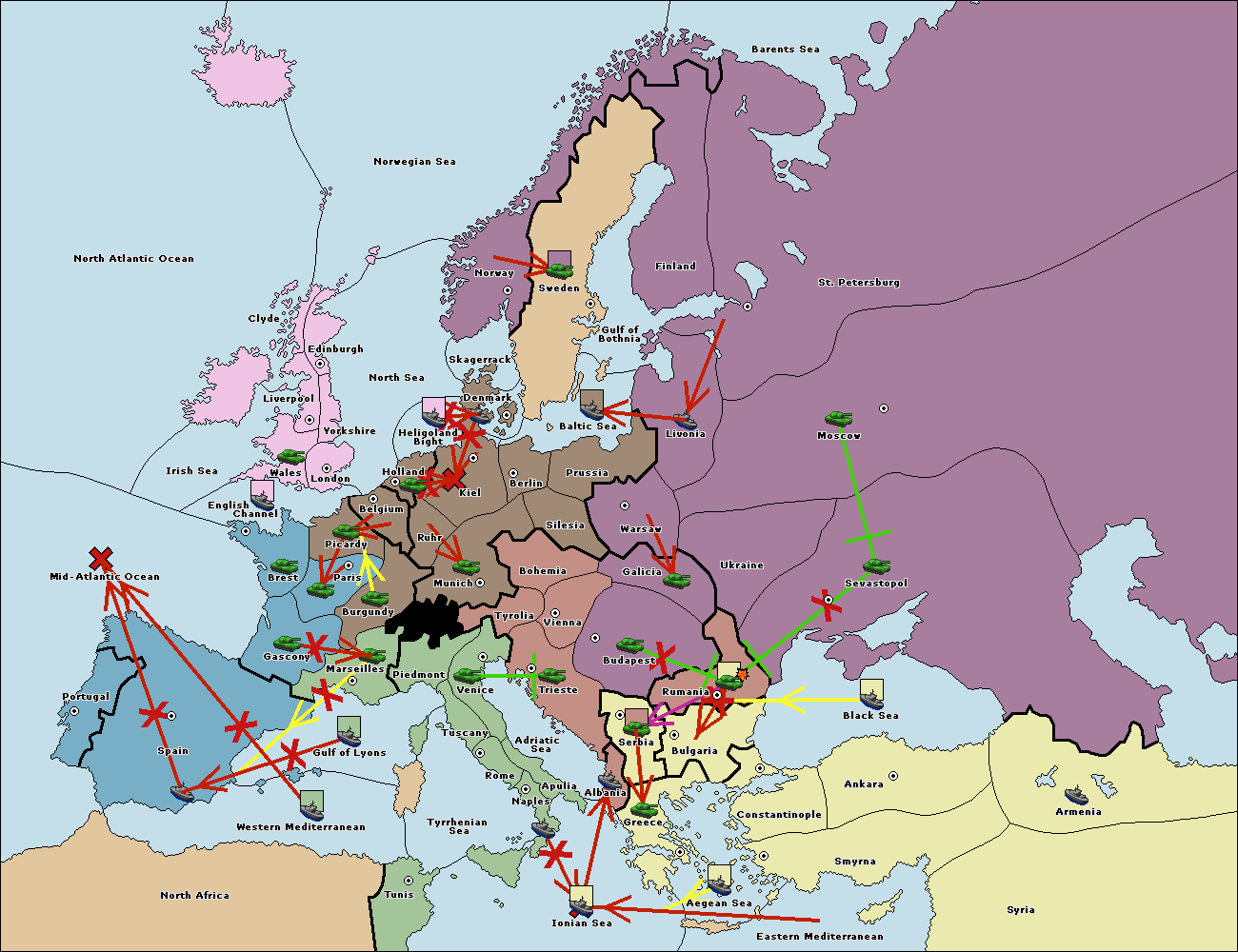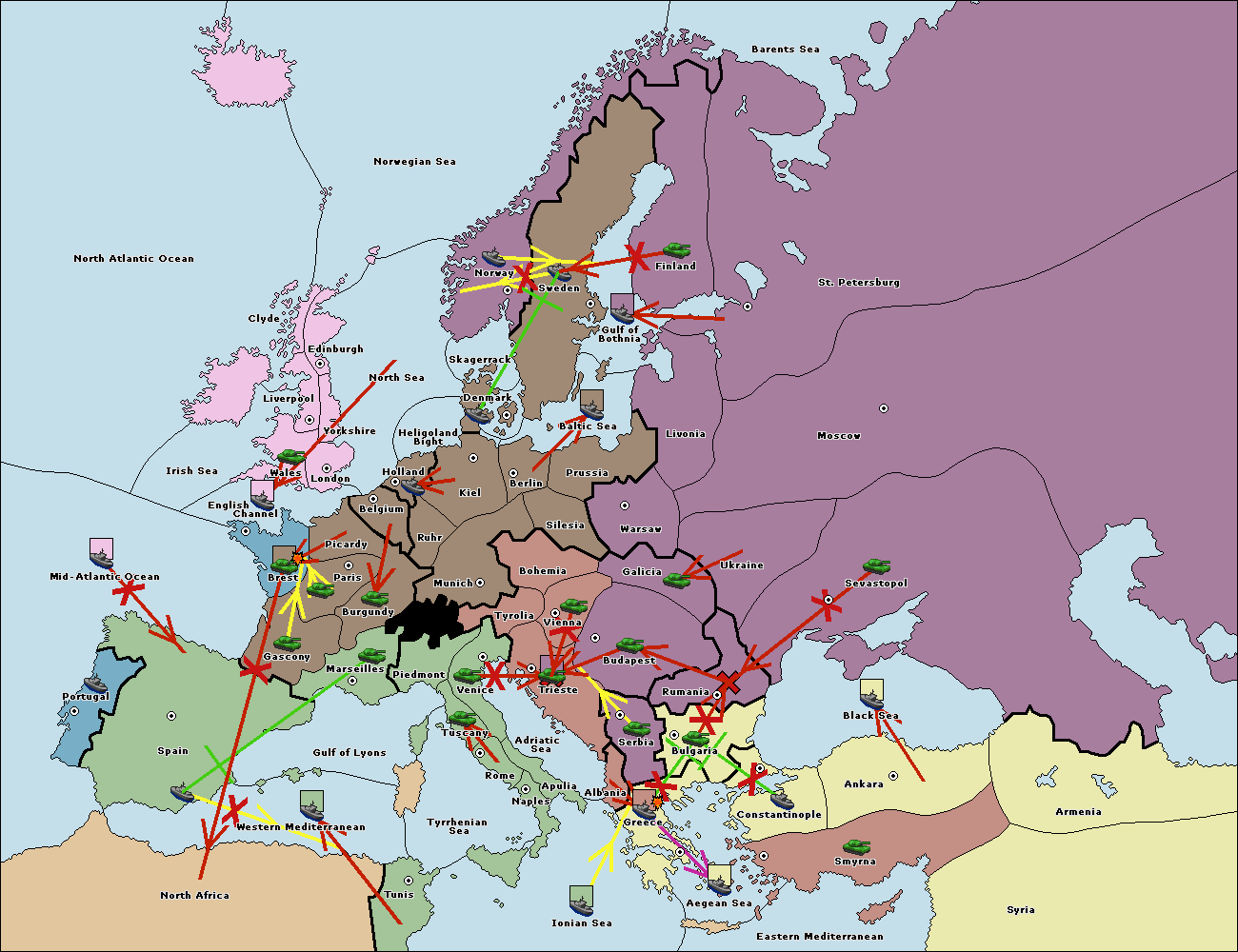 The fleet at Ionian Sea support move to Tunis from Western Mediterranean.
