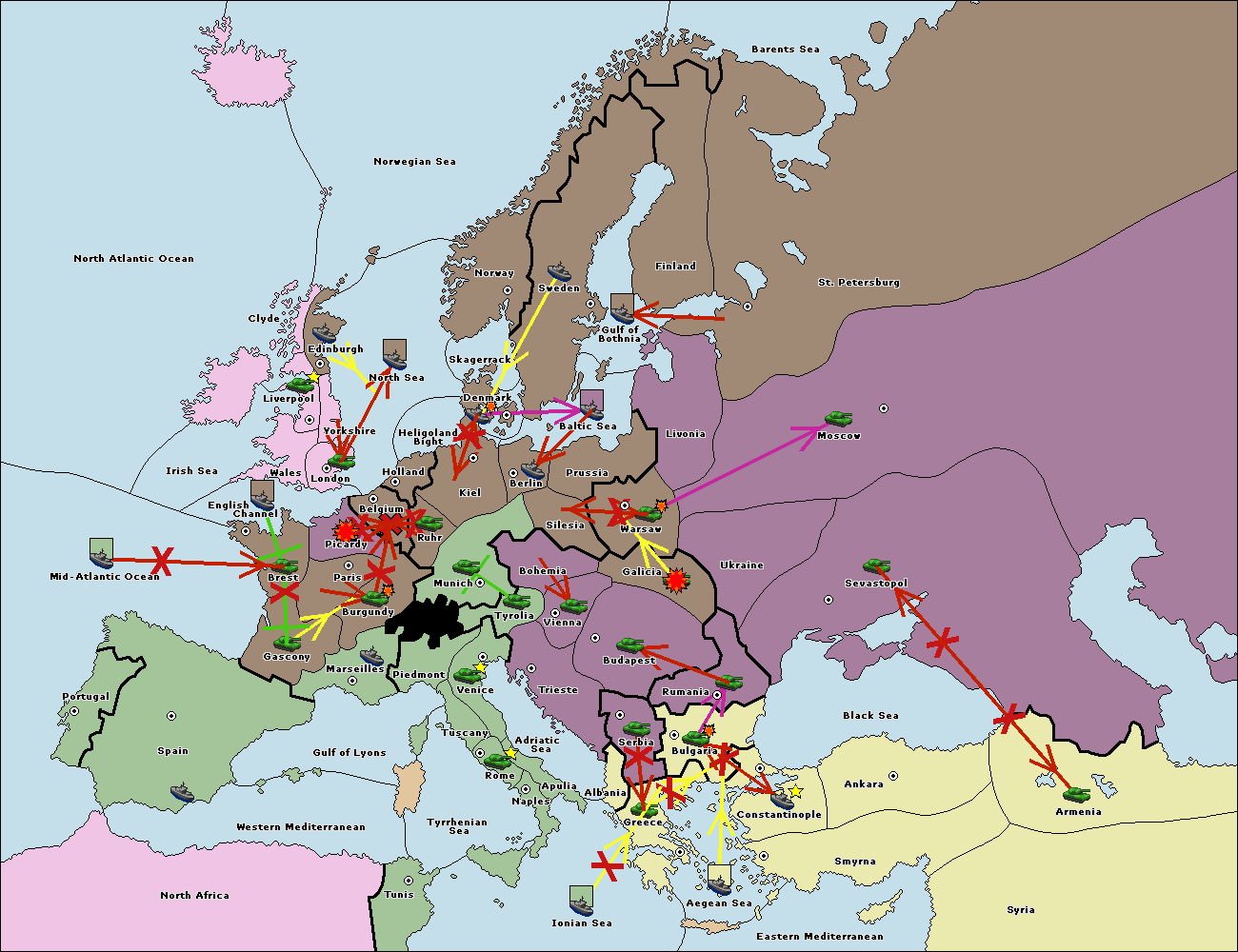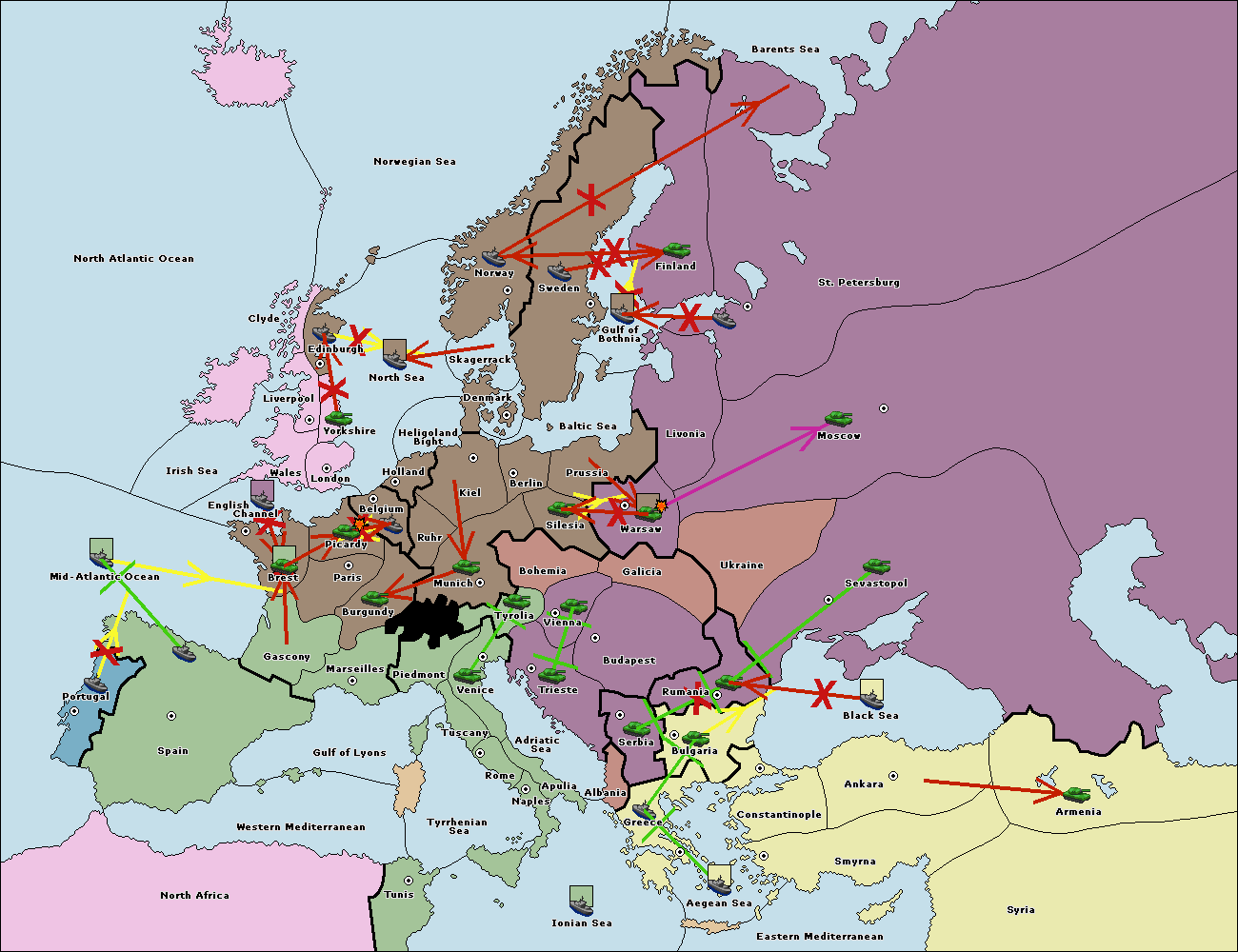 The fleet at Spain (South Coast) support move to Marseilles from Burgundy.