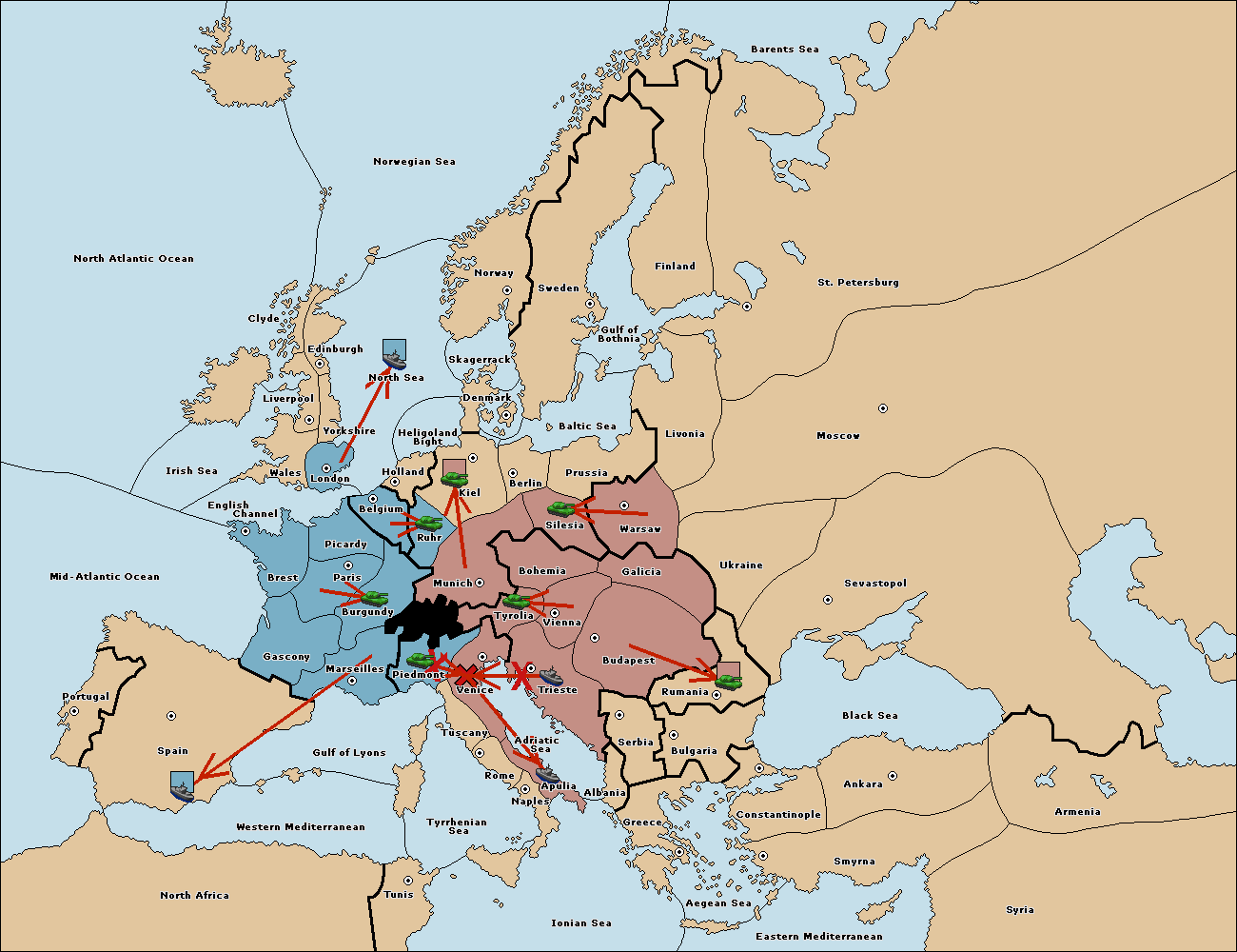 The army at Kiel support move to Munich from Tyrolia.