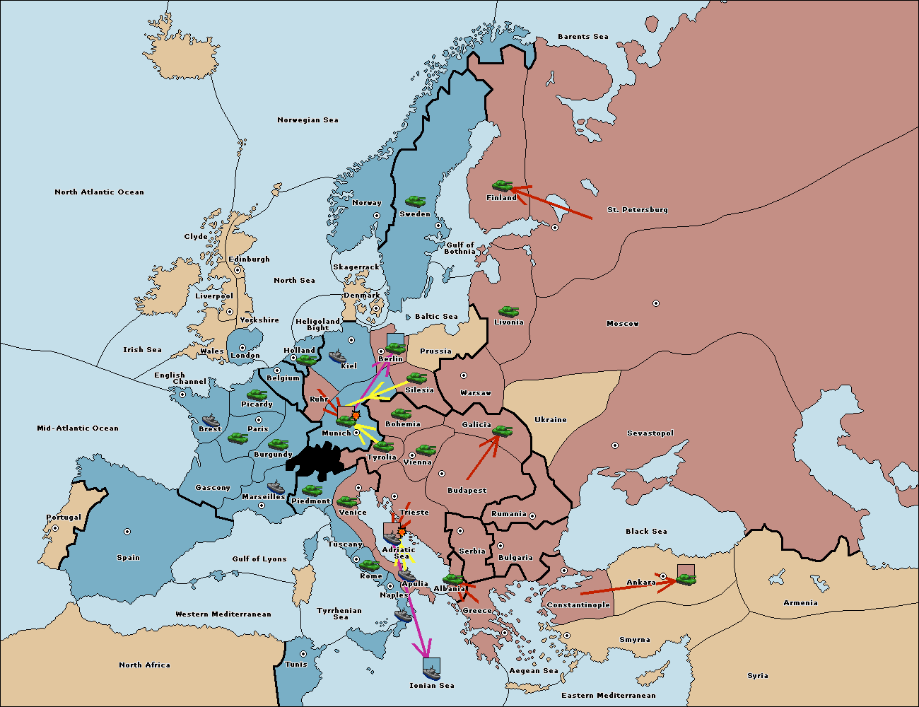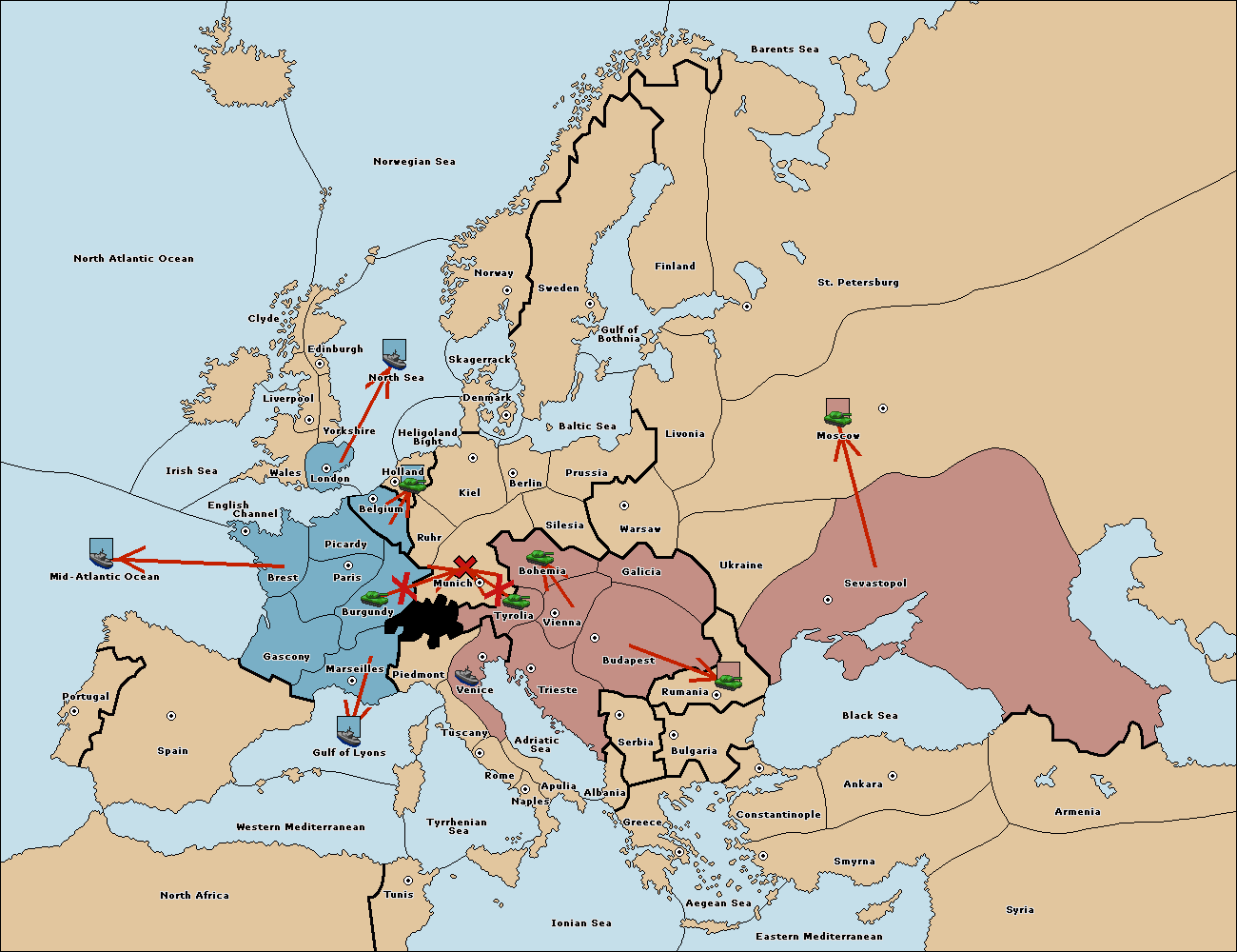 The army at Tyrolia support move to Munich from Ruhr.