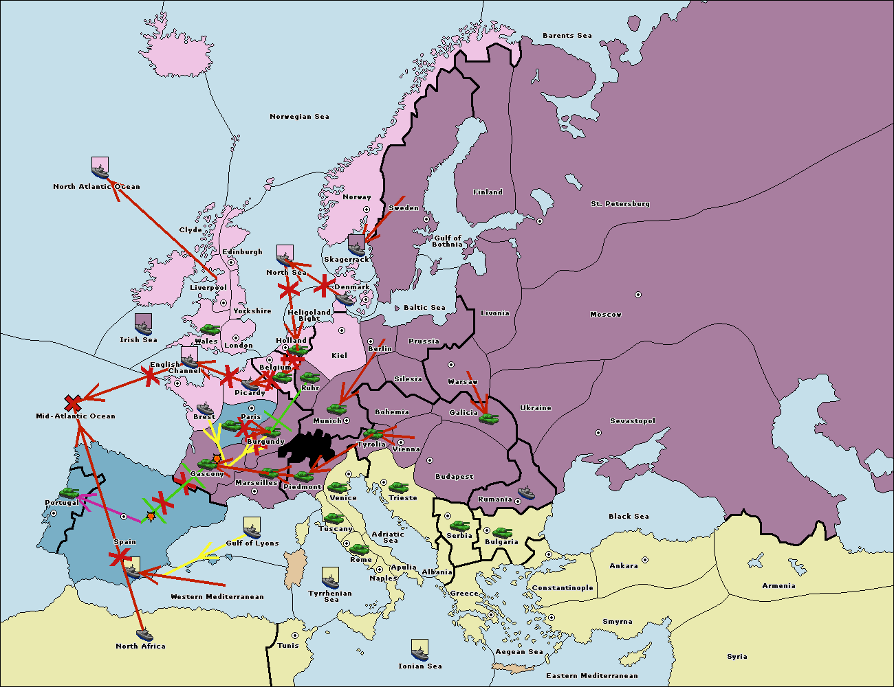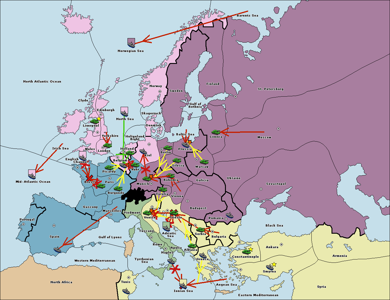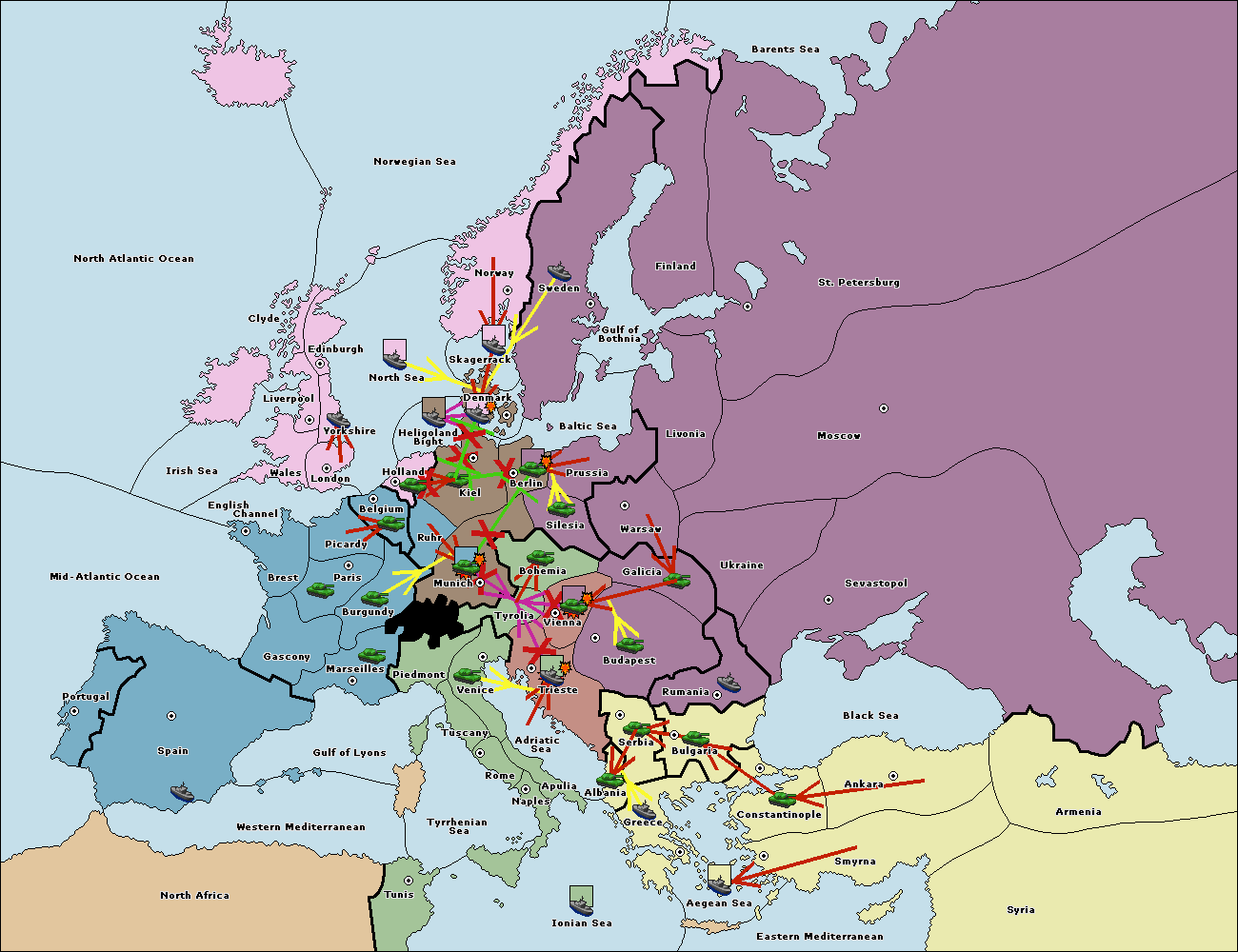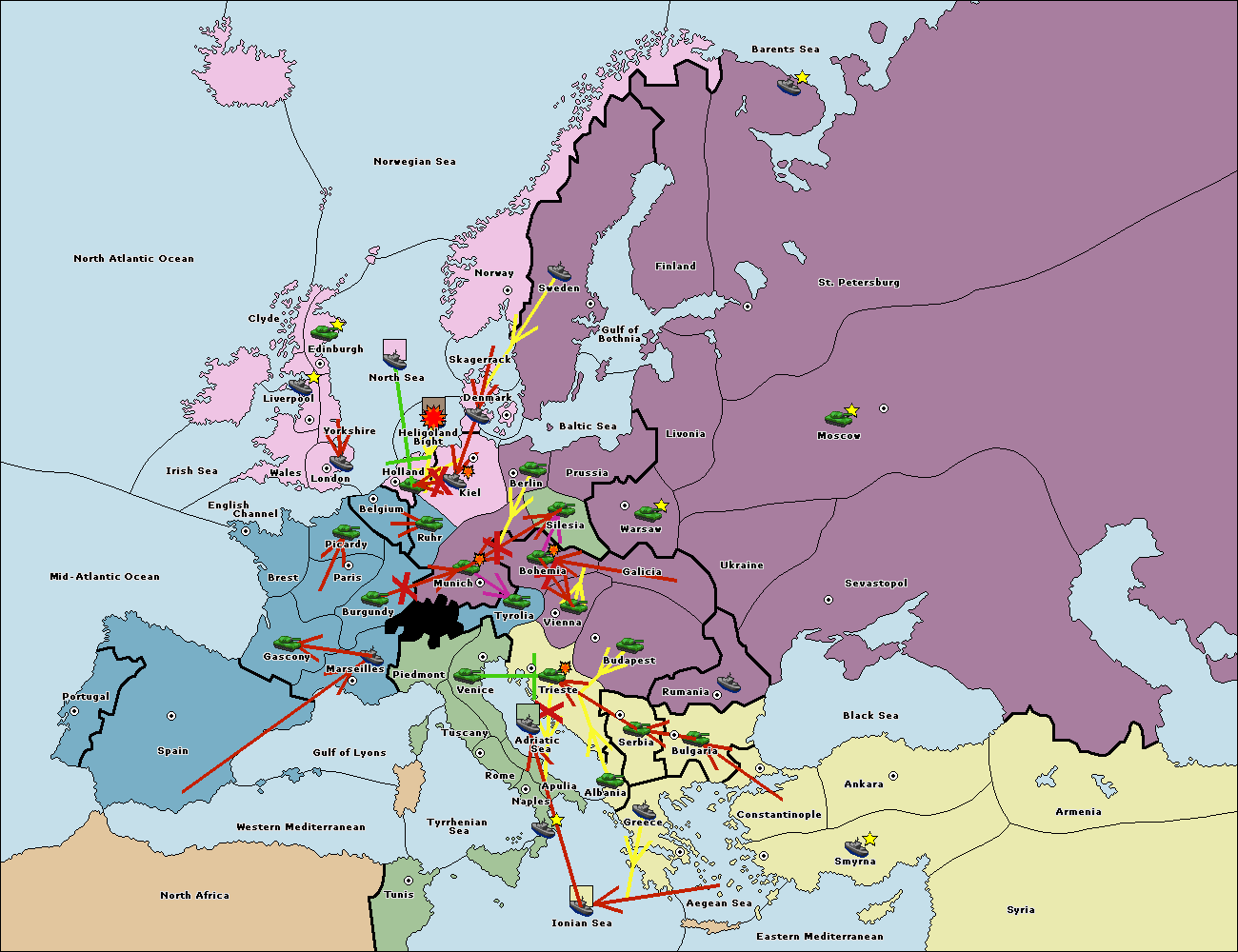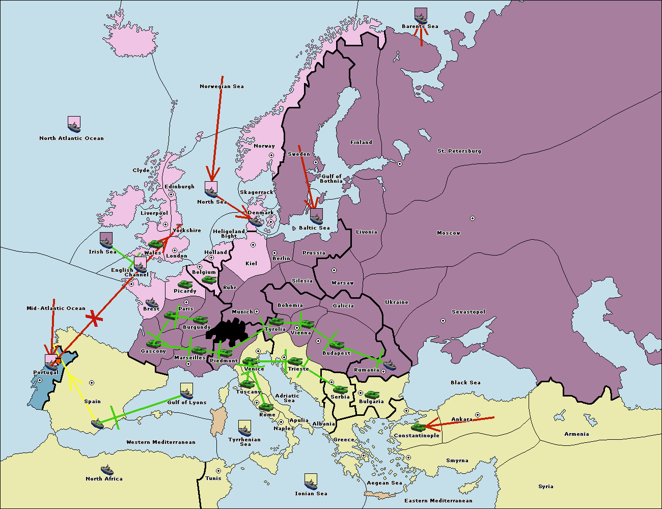 The fleet at Bulgaria (South Coast) move to Greece.