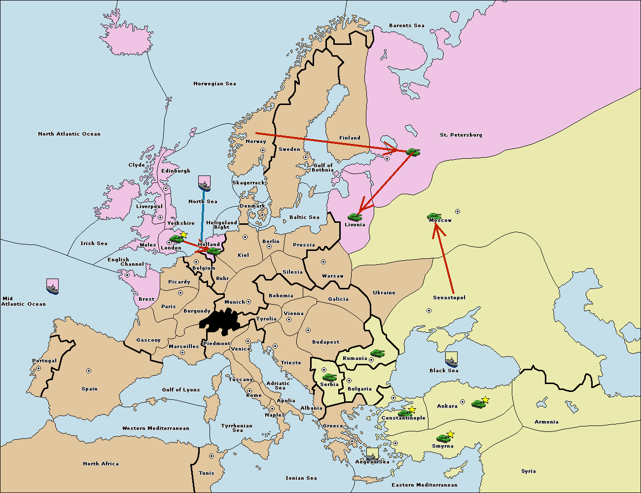 The fleet at Mid-Atlantic Ocean move to Western Mediterranean.