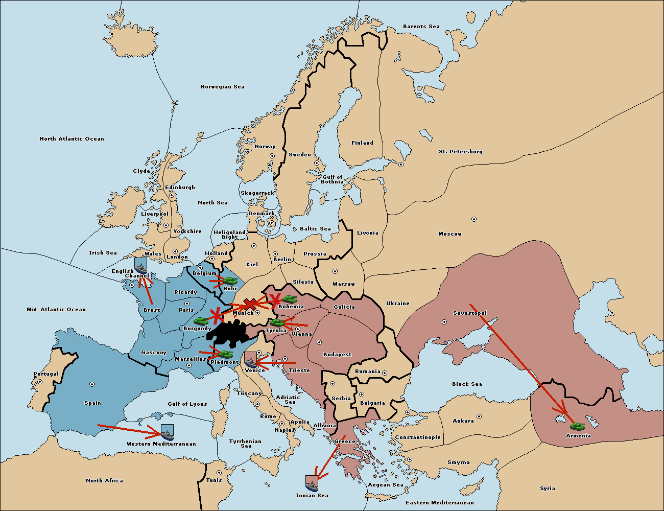 The fleet at Tyrrhenian Sea move to Gulf of Lyons.
