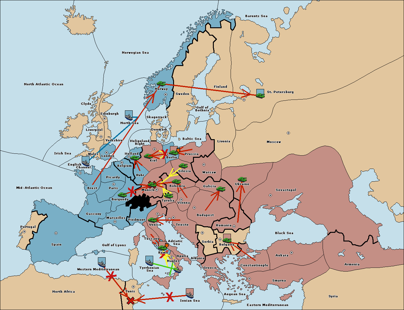 The fleet at Ionian Sea support move to Tyrrhenian Sea from Naples.