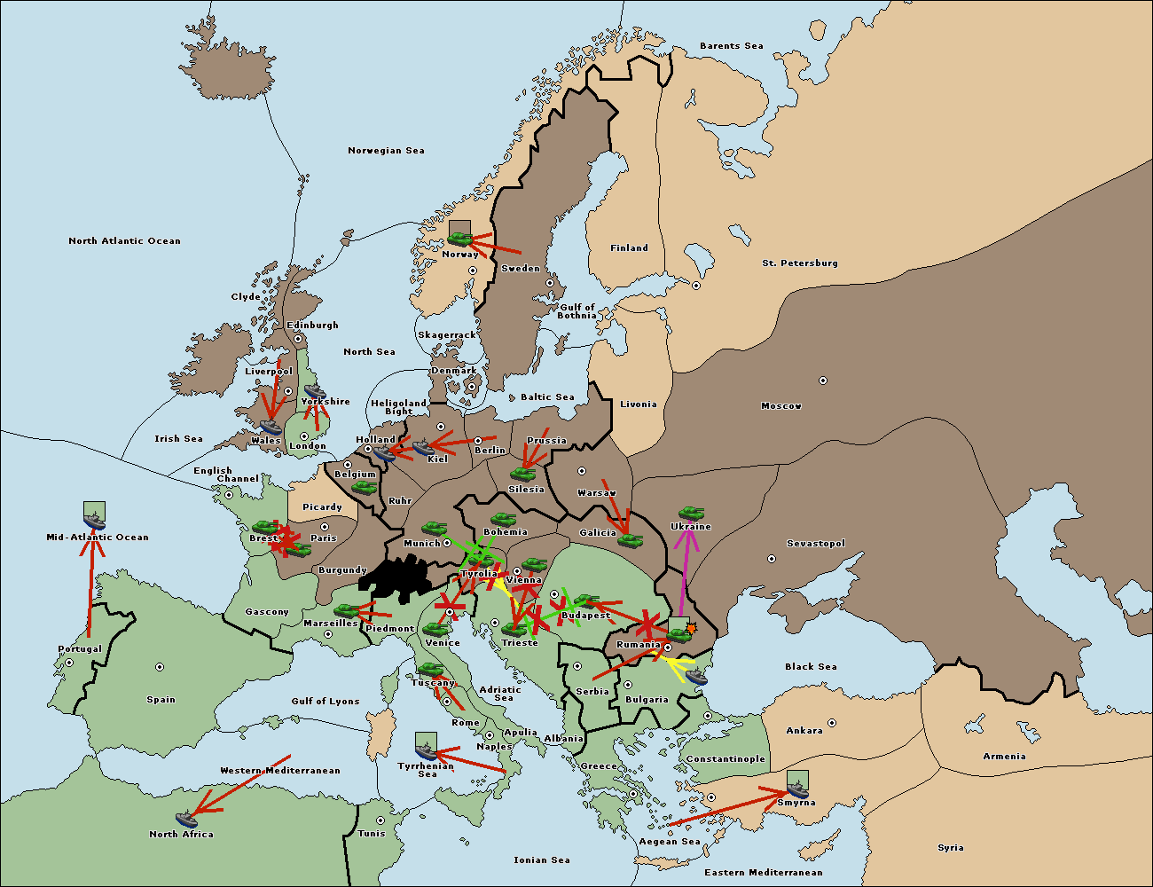 The fleet at Bulgaria (South Coast) move to Constantinople.