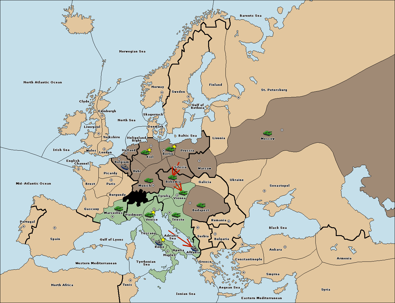 The army at Tyrolia support move to Vienna from Trieste.