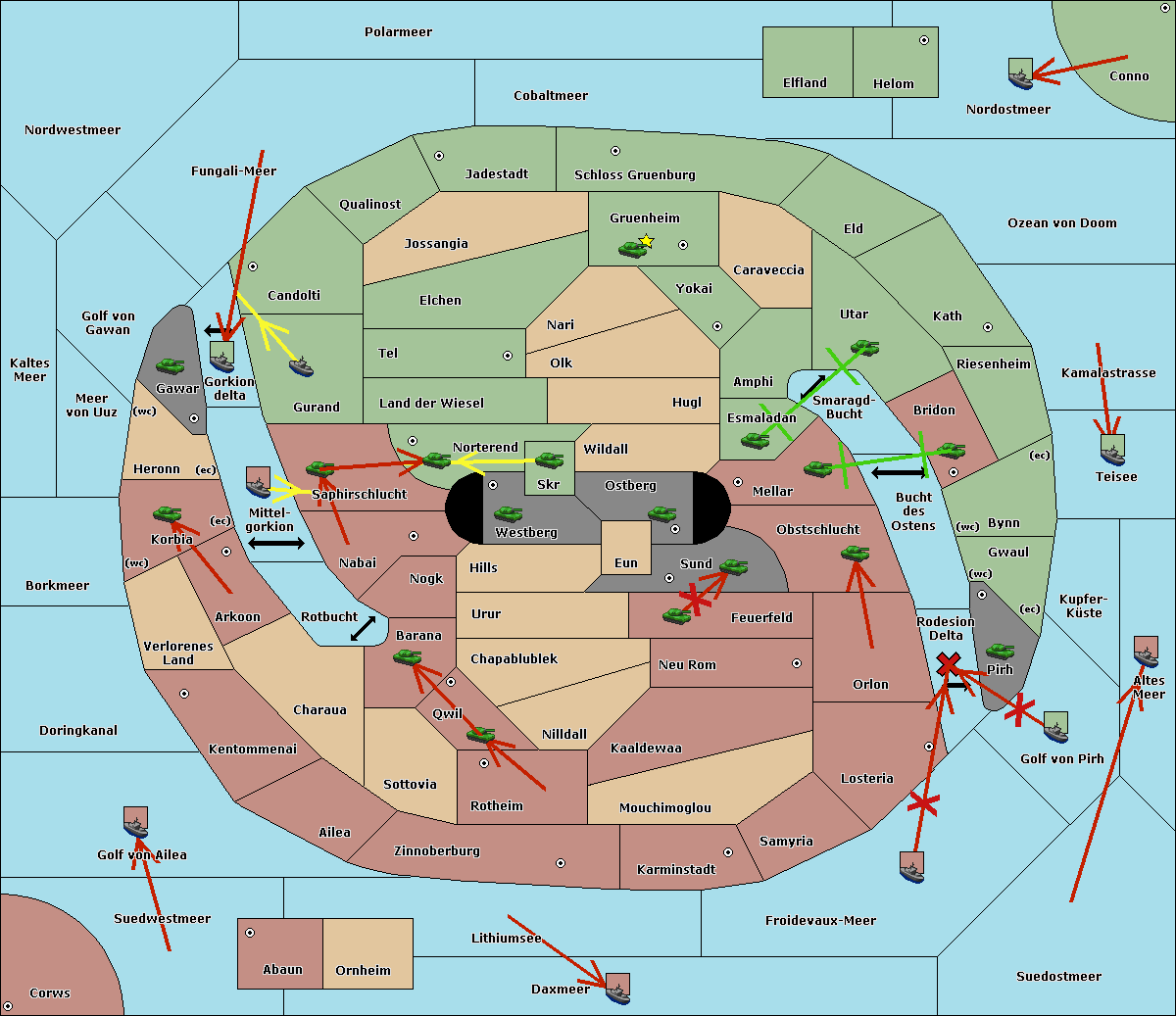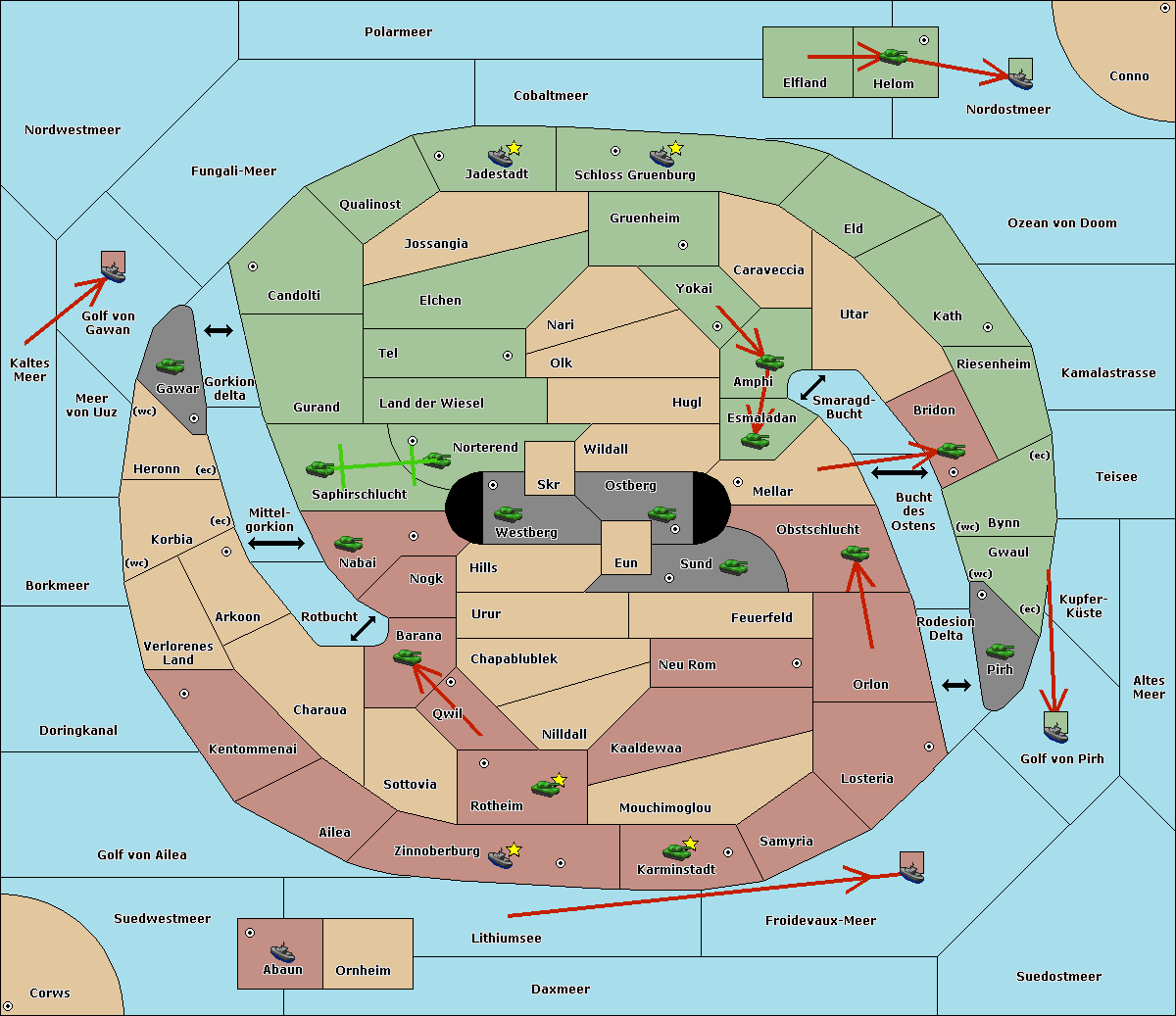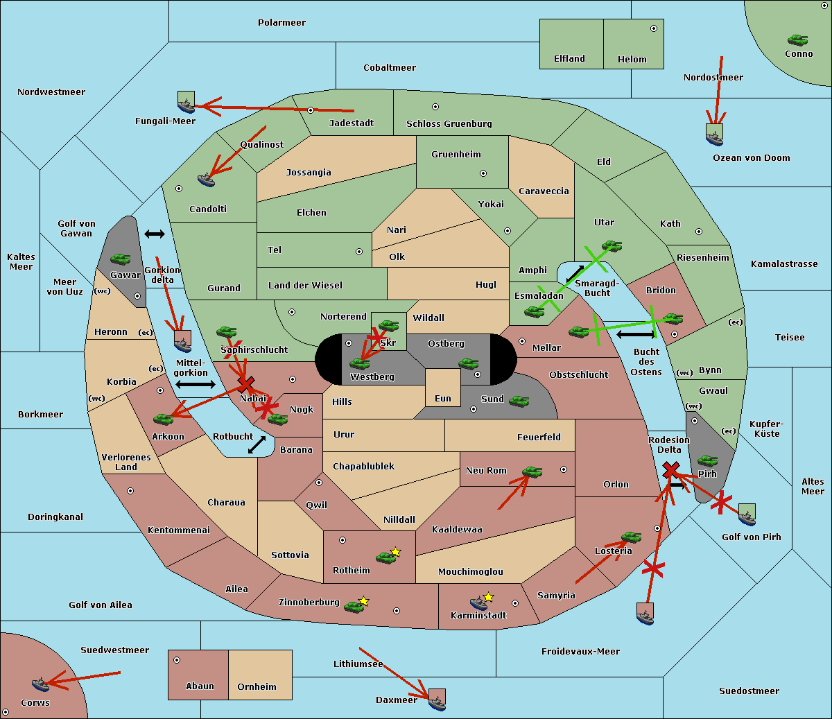 The fleet at Kaltes Meer move to Golf von Gawan.