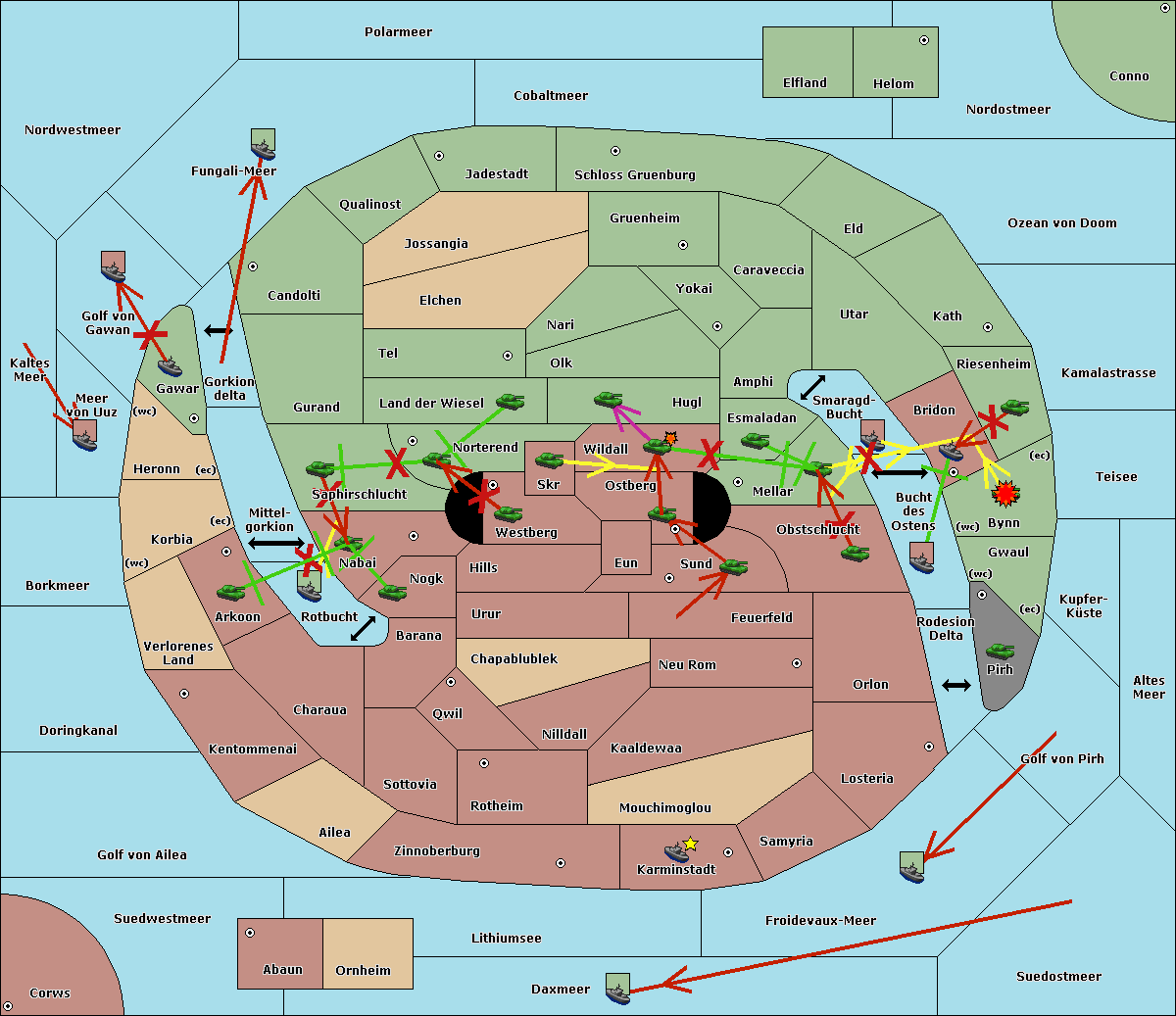 The fleet at Mitelgorkion support move to Gawar from Golf von Gawan.