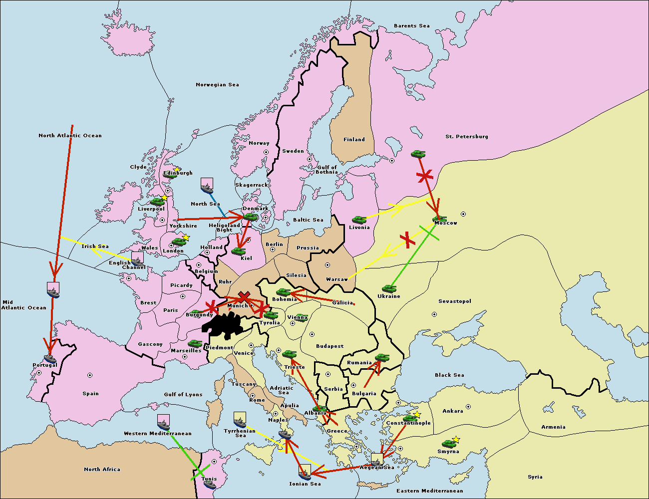 The fleet at Mid-Atlantic Ocean move to Western Mediterranean.