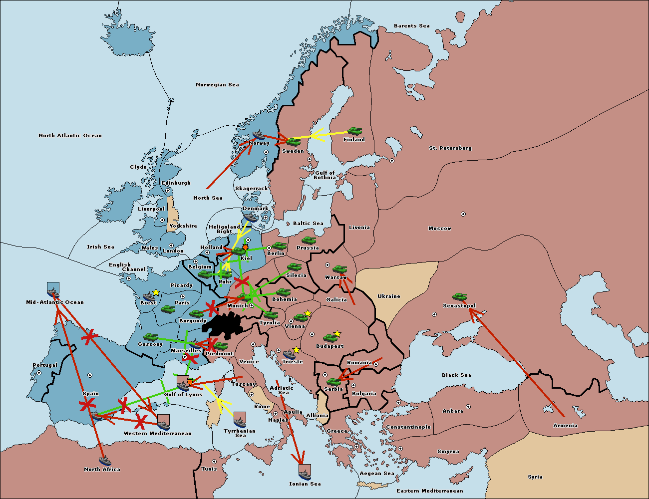 The fleet at Tyrrhenian Sea support move to Gulf of Lyons from Western Mediterranean.