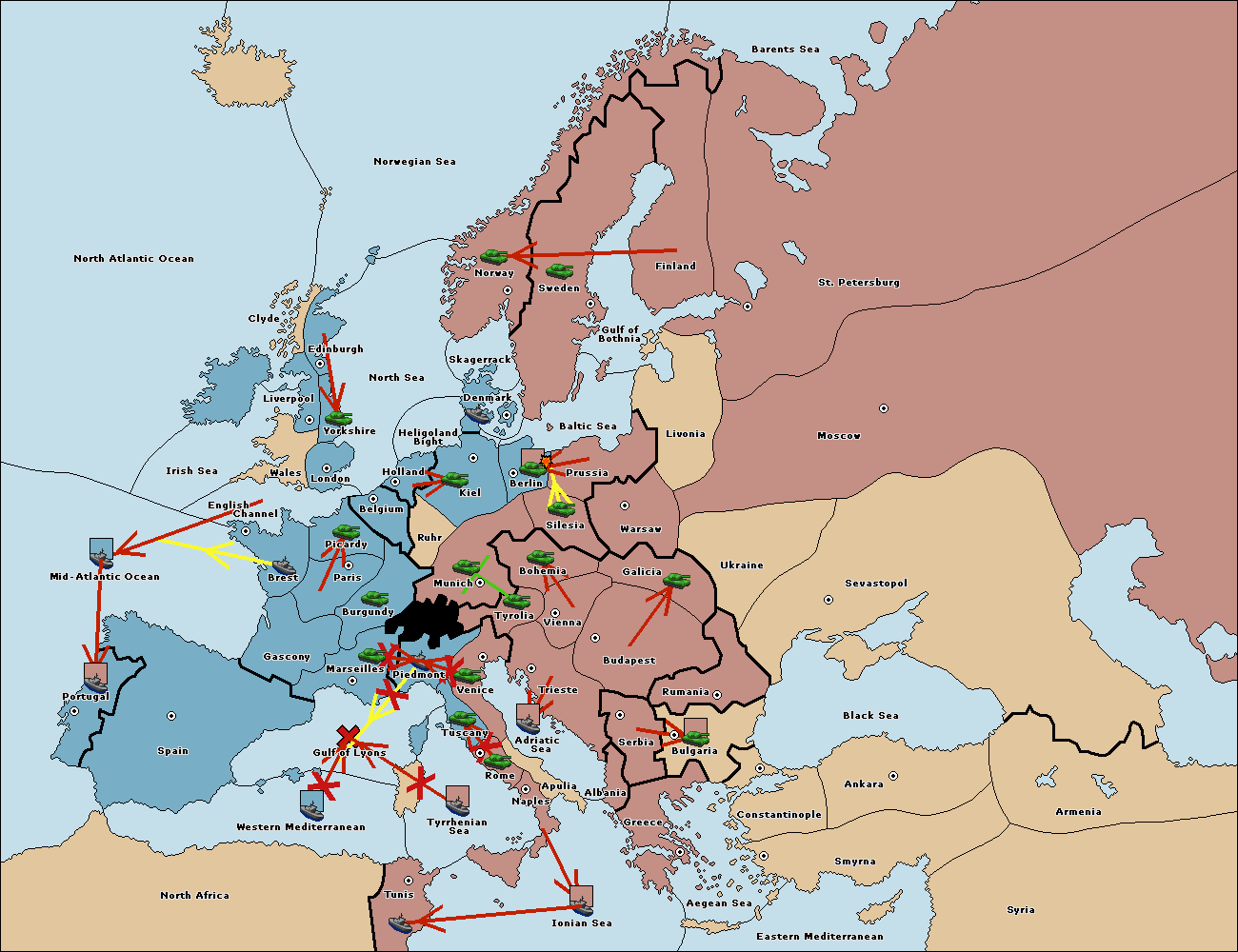 The fleet at Western Mediterranean move to Gulf of Lyons.