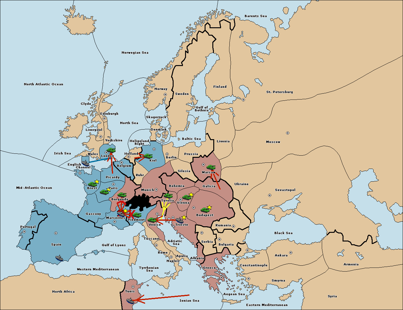 The fleet at Tyrrhenian Sea move to Gulf of Lyons.