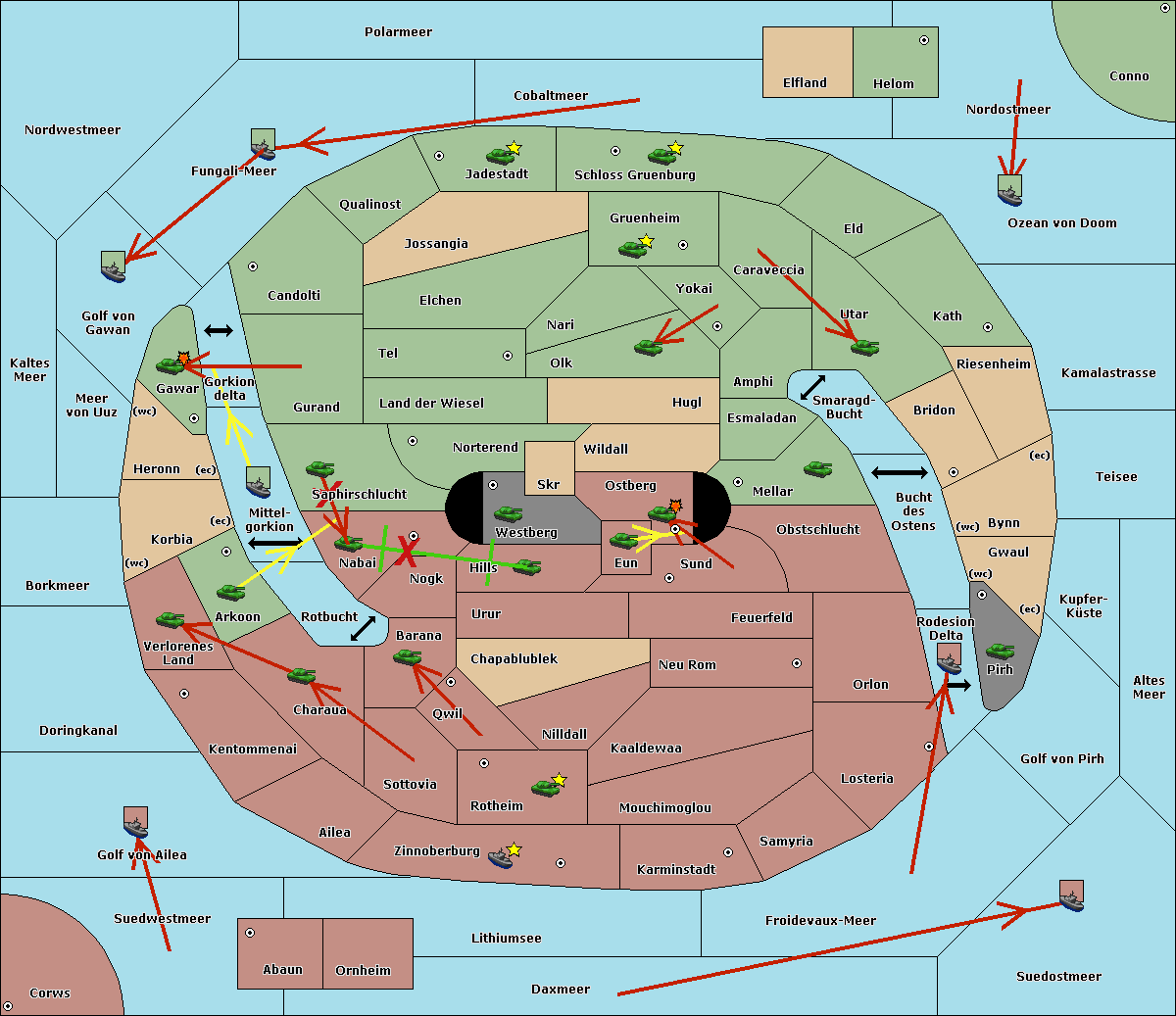 The fleet at Zinnoberburg move to Ailea.