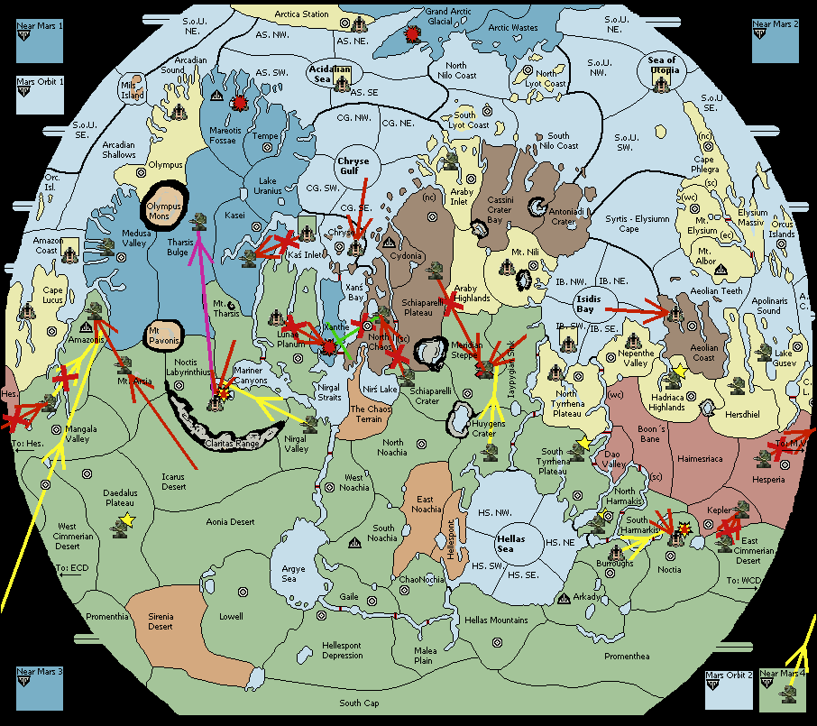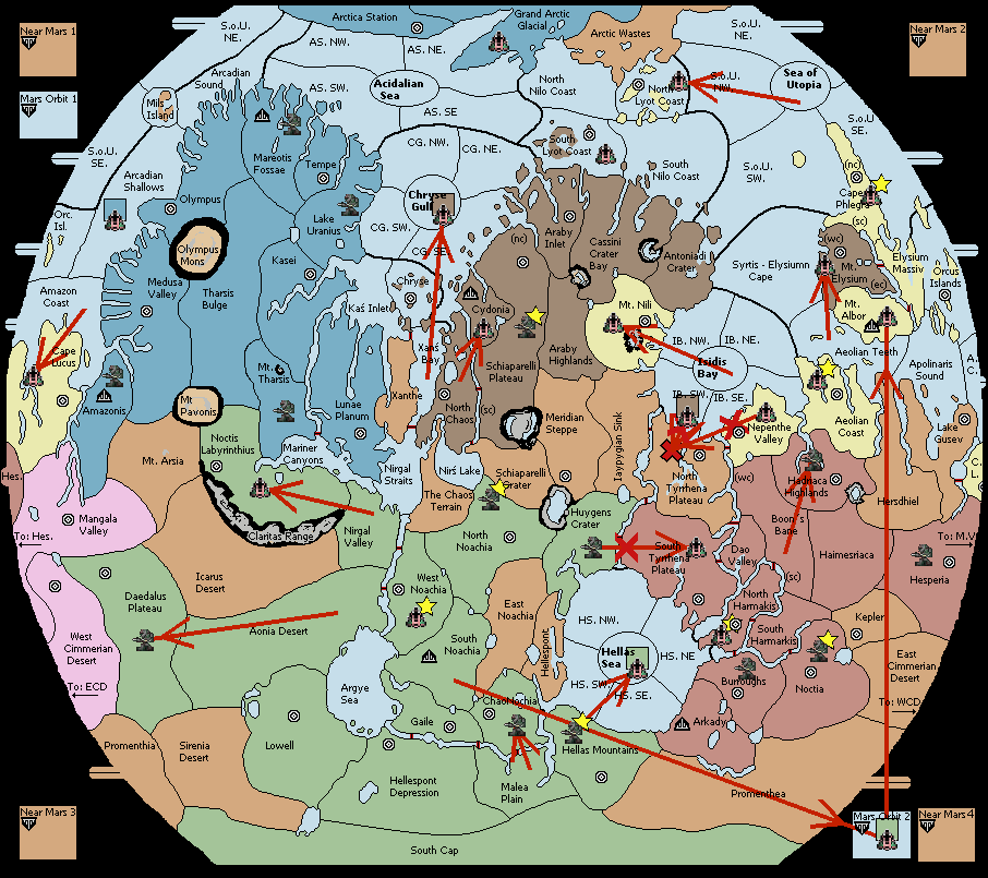 The army at Mt. Tharsis move to Tharsis Bulge.