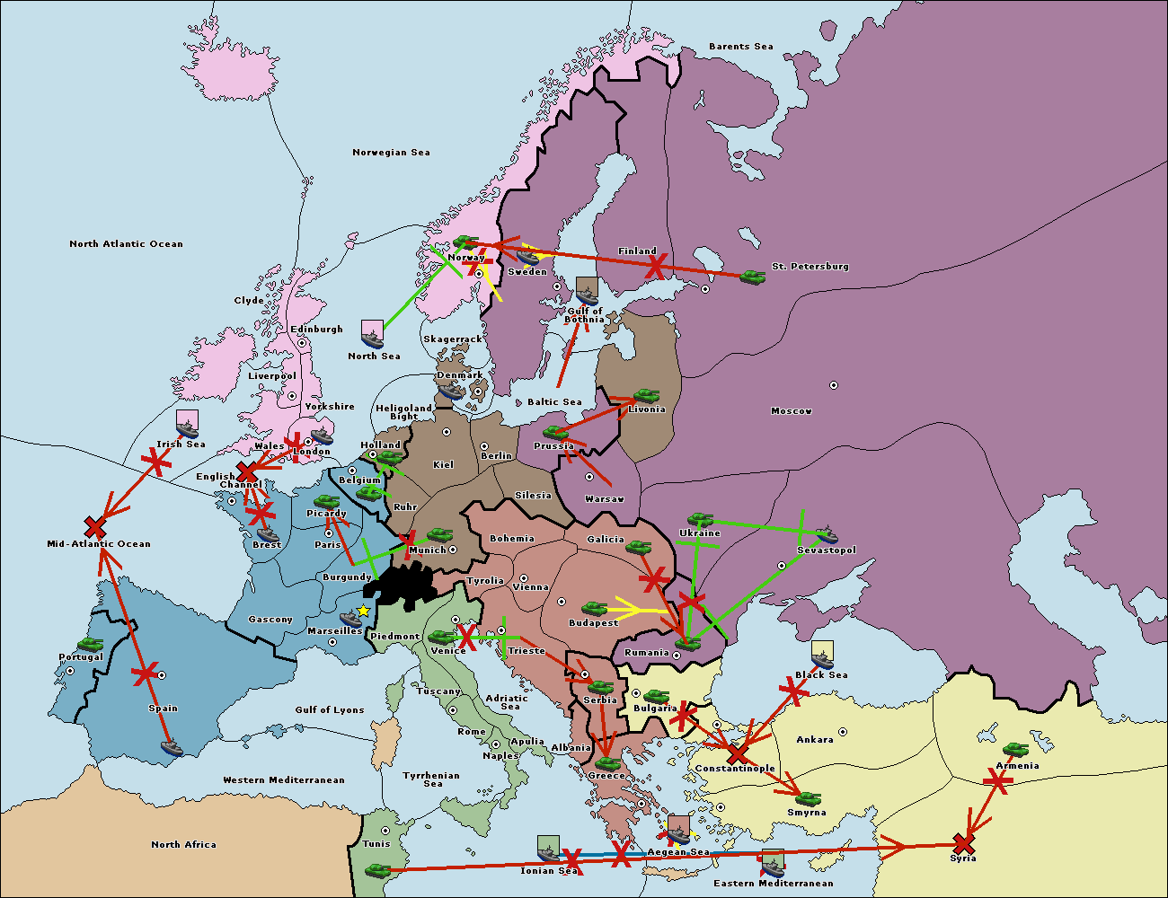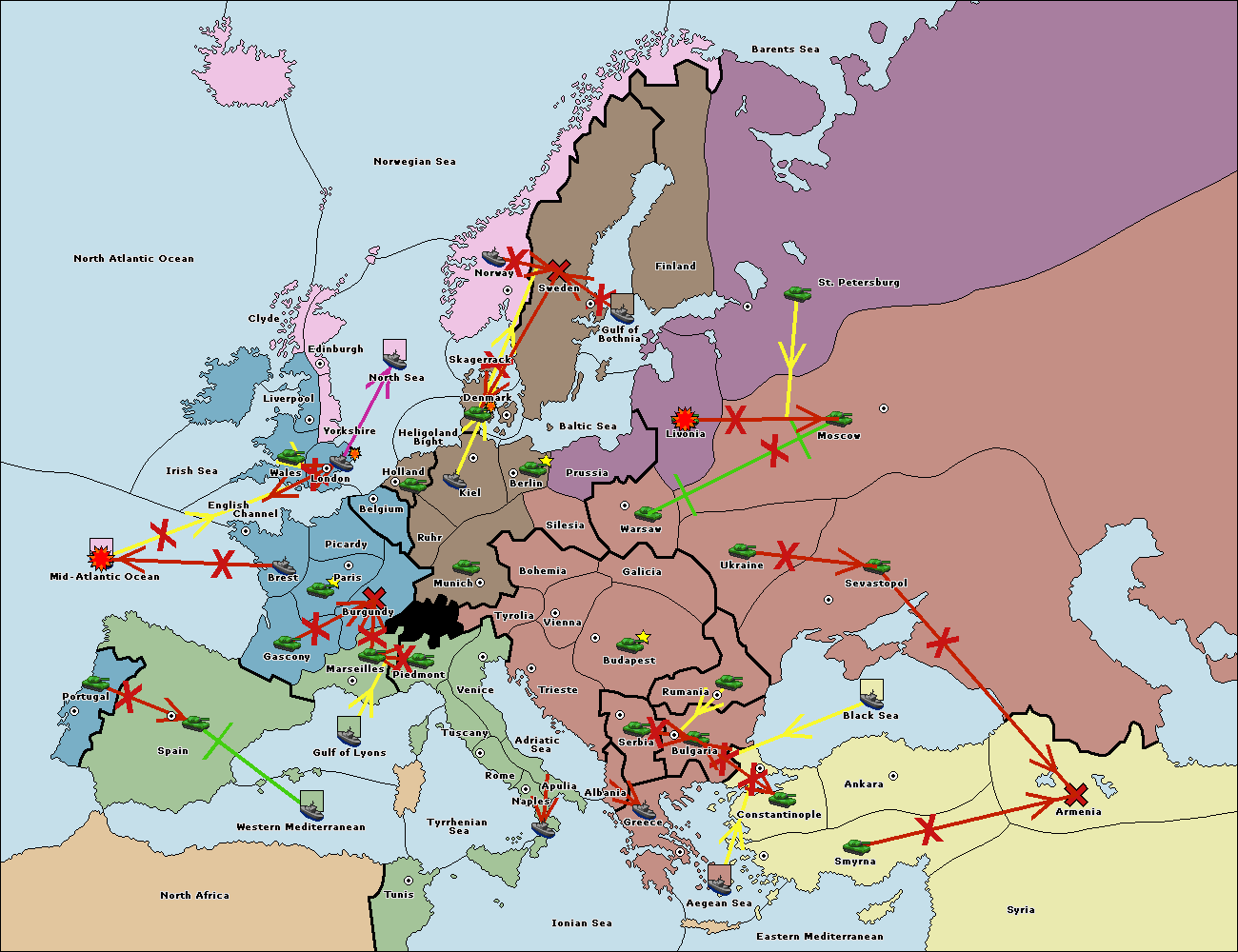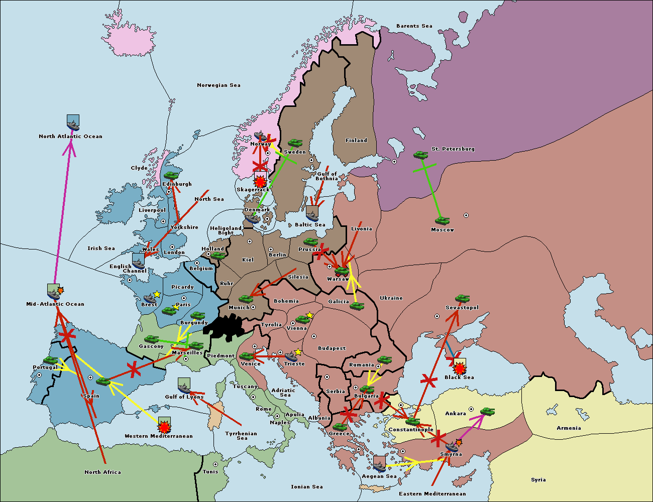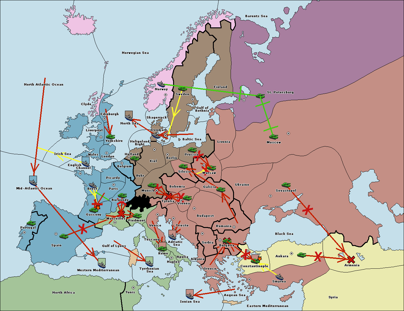 The fleet at Aegean Sea support move to Smyrna from Tunis.