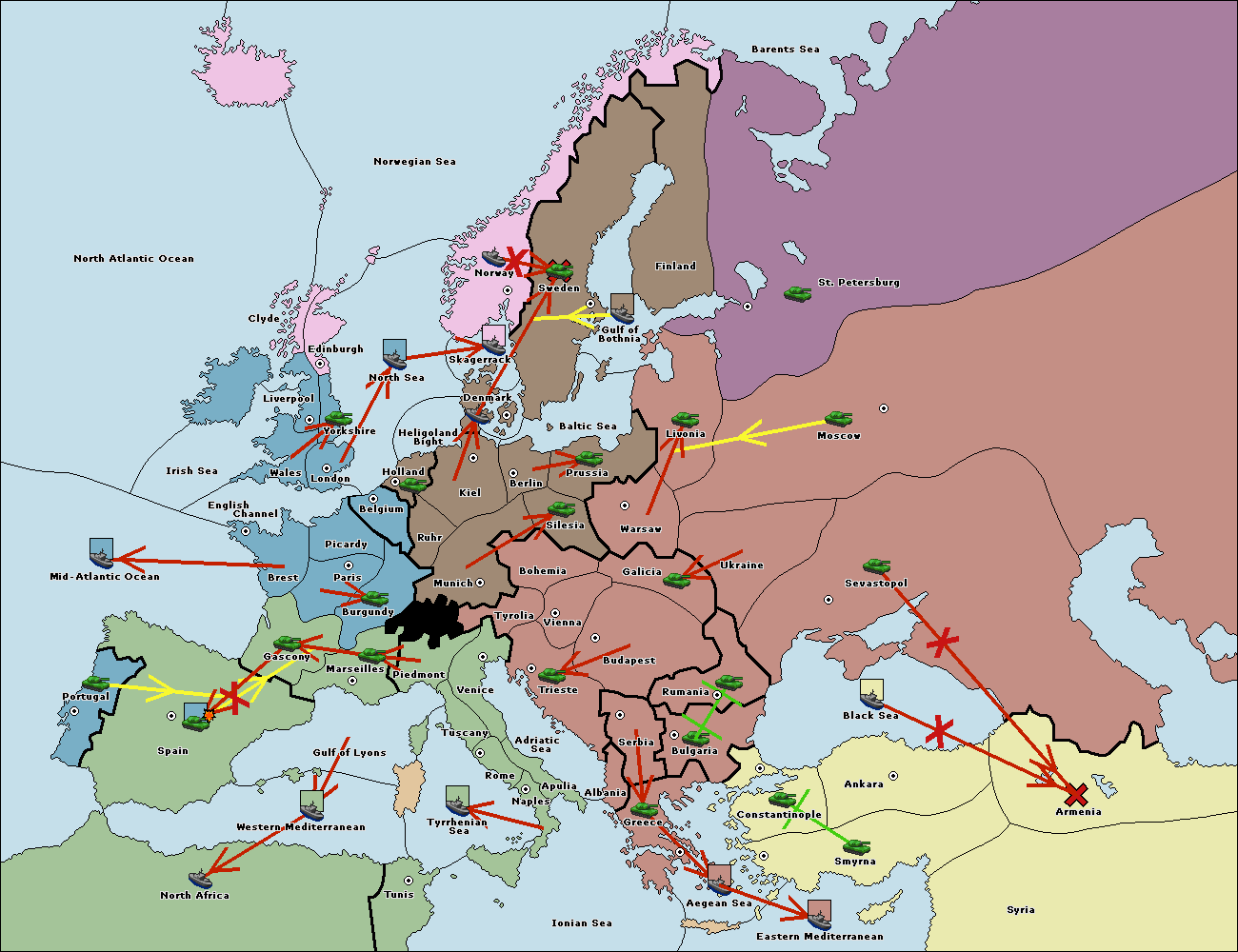 The fleet at Gulf of Bothnia support move to St. Petersburg from Livonia.