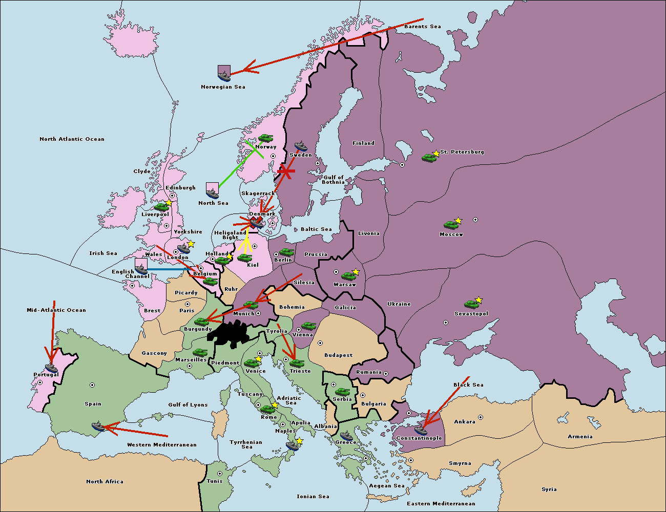 The fleet at St. Petersburg (North Coast) move to Barents Sea.
