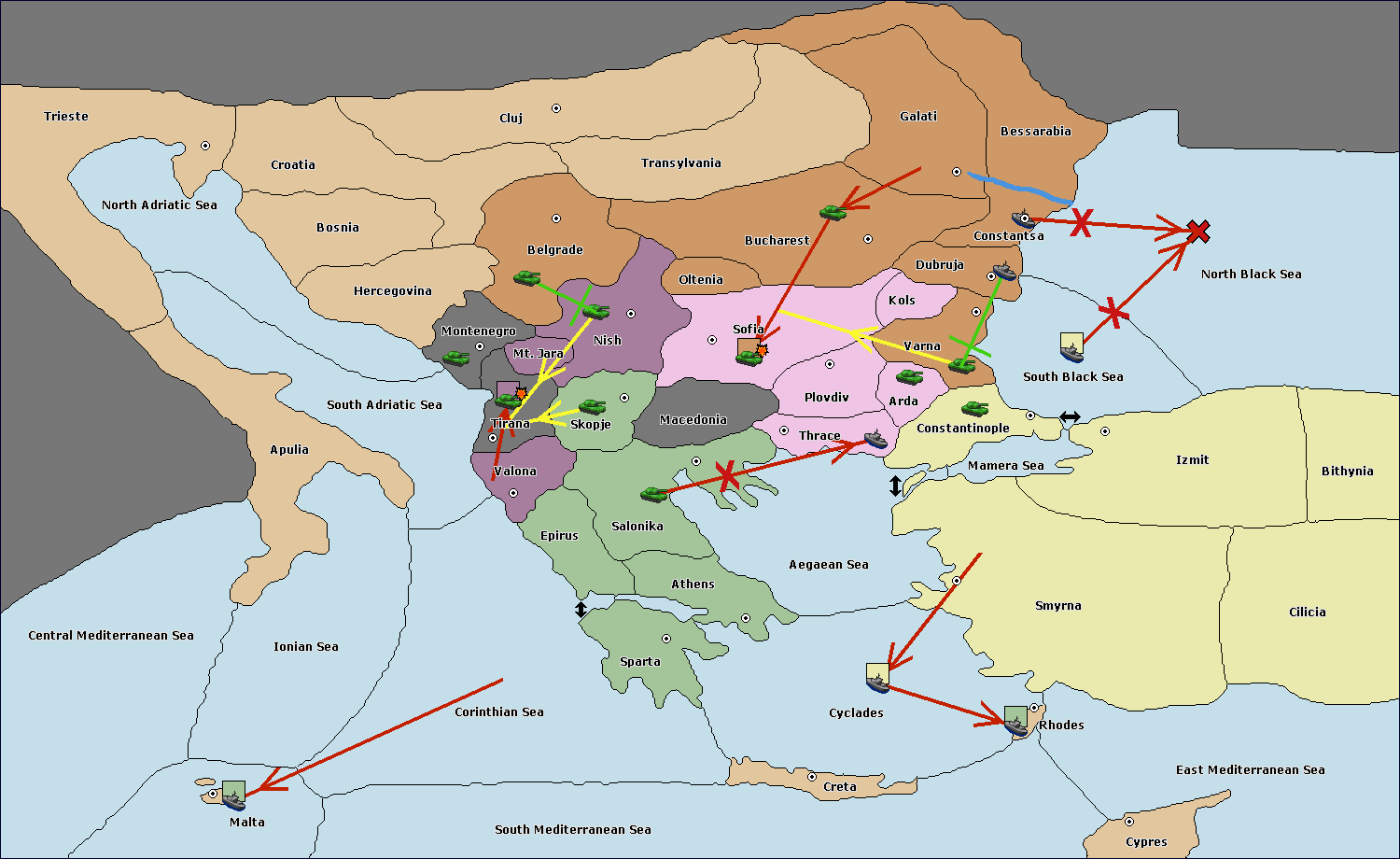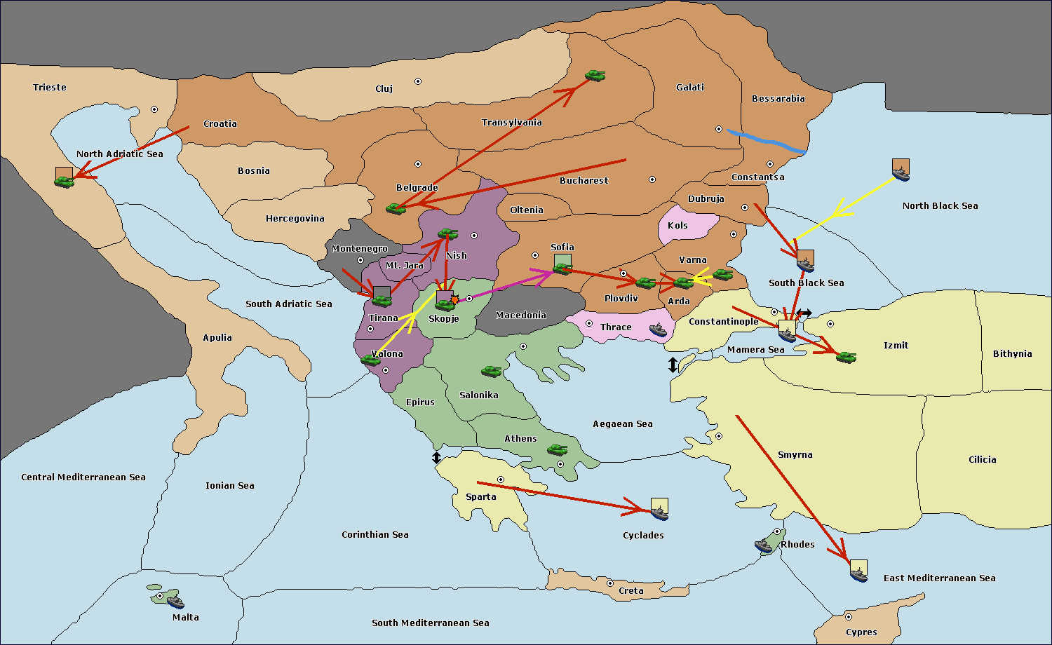 The army at Bucharest move to Sofia.