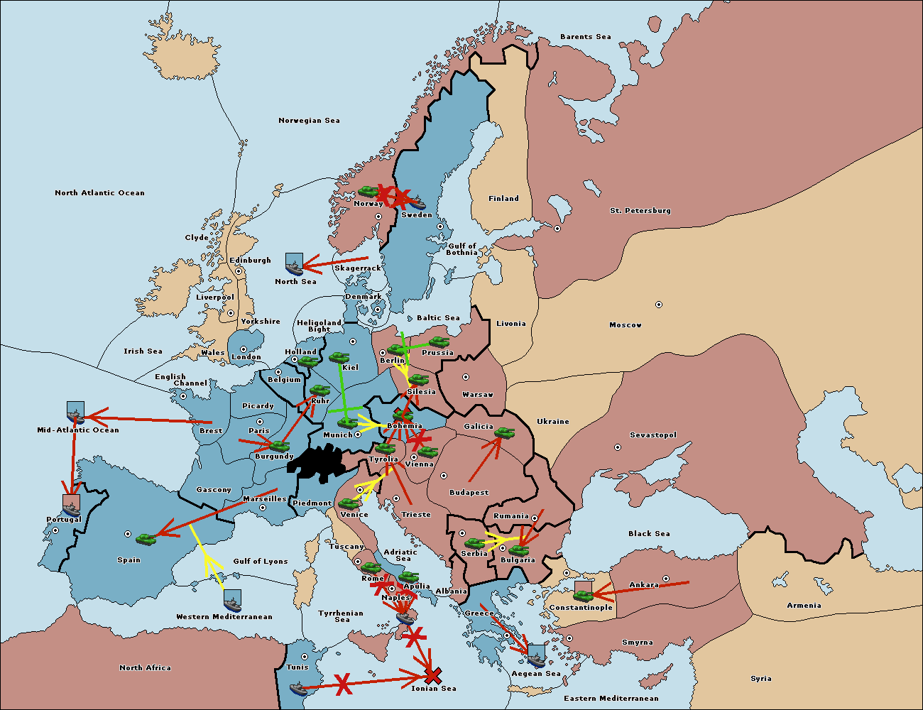 The fleet at Ionian Sea support move to Tunis from Tyrrhenian Sea.