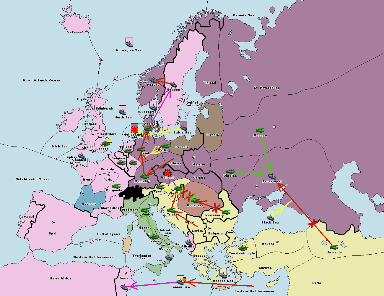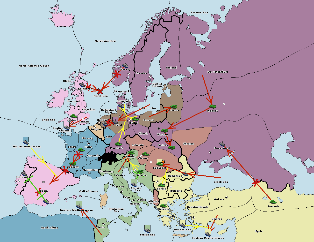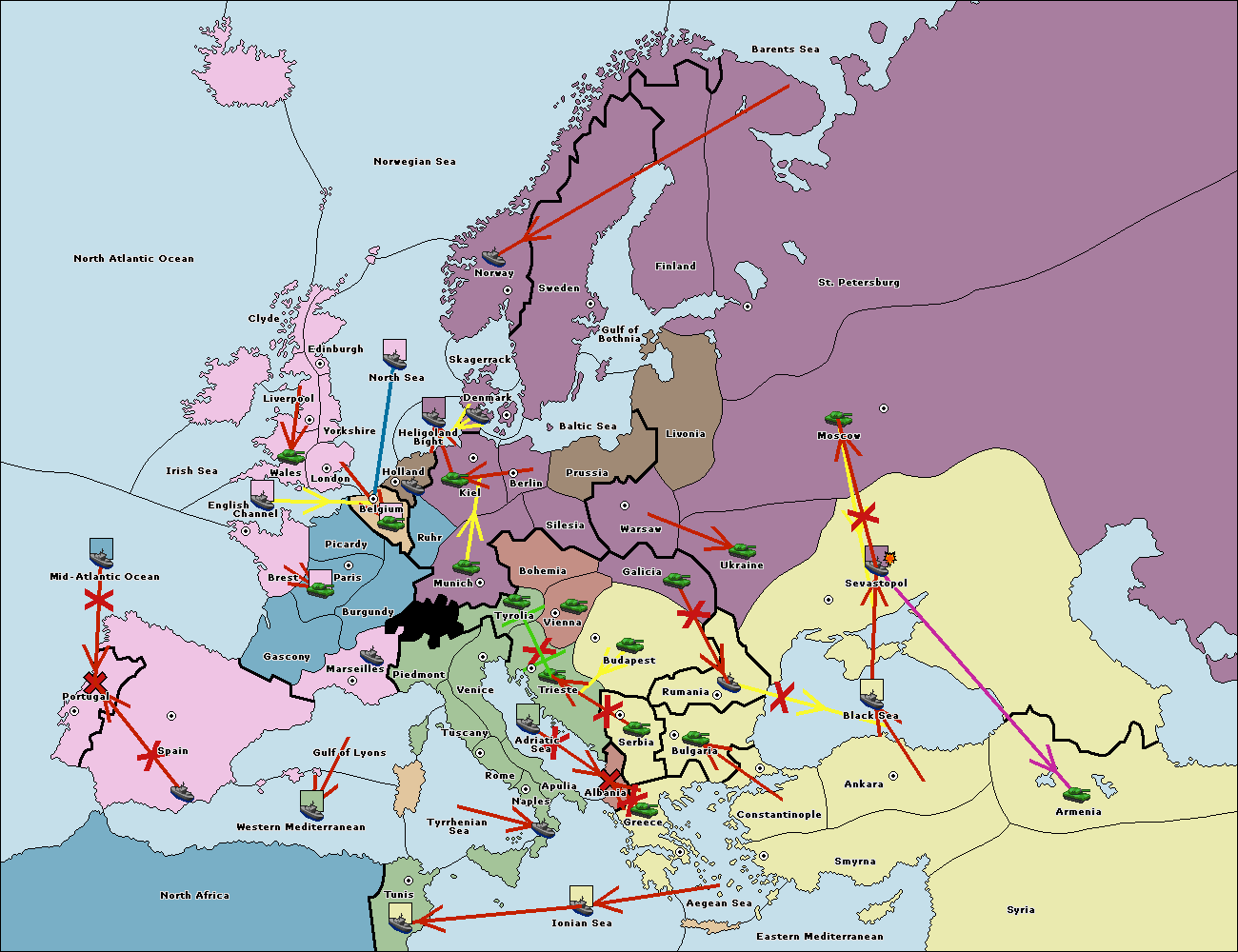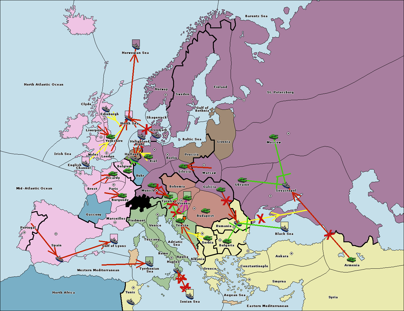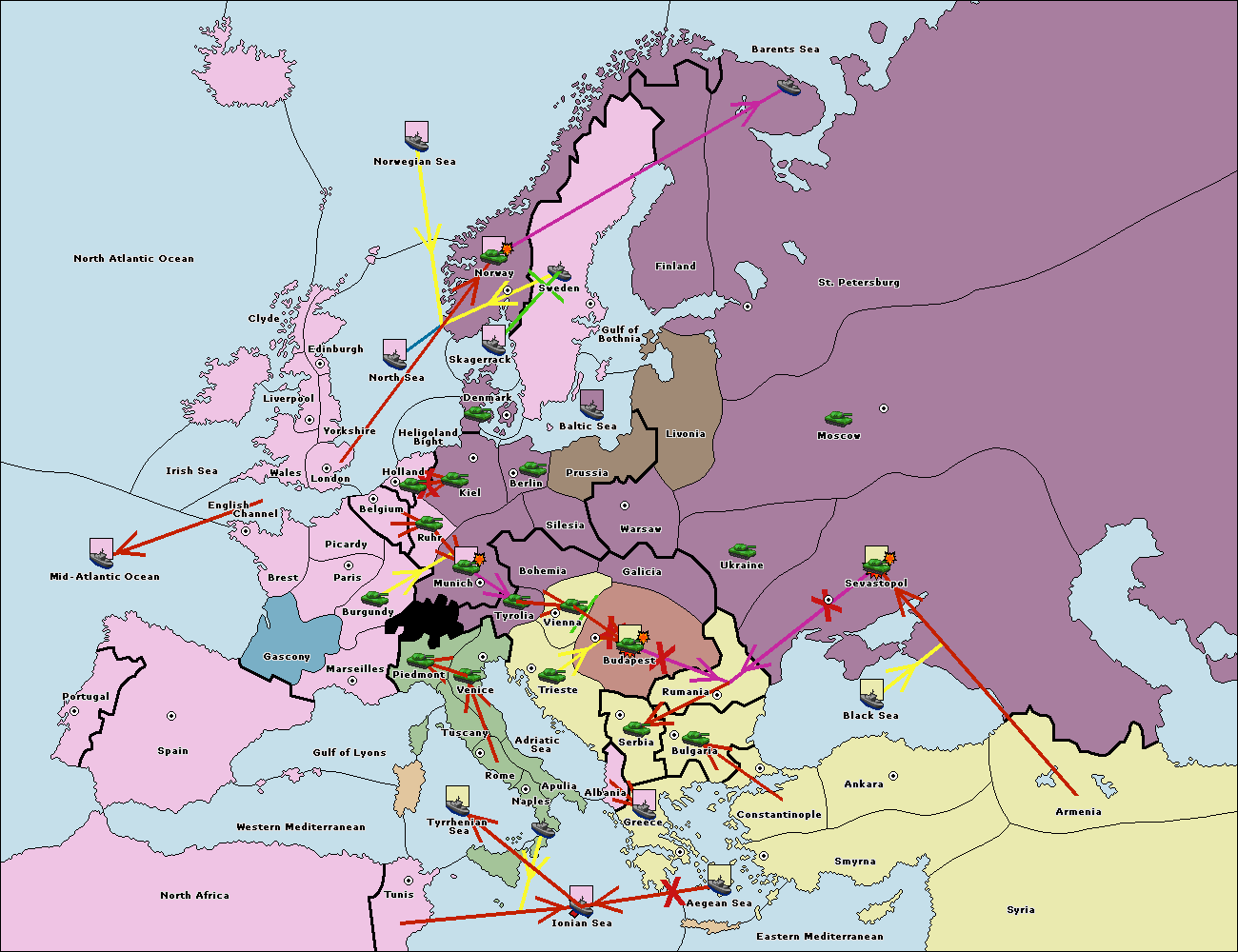 The fleet at Rumania support move to Sevastopol from Armenia.