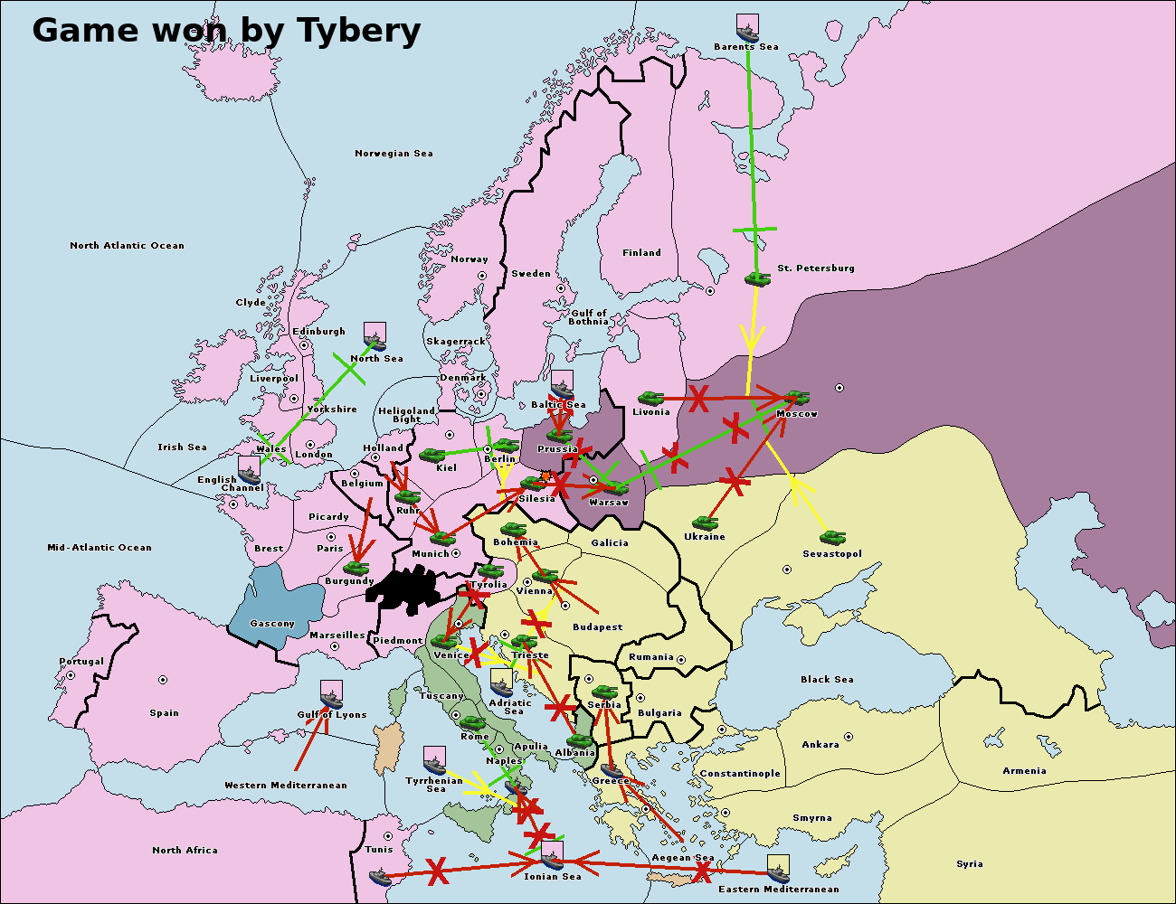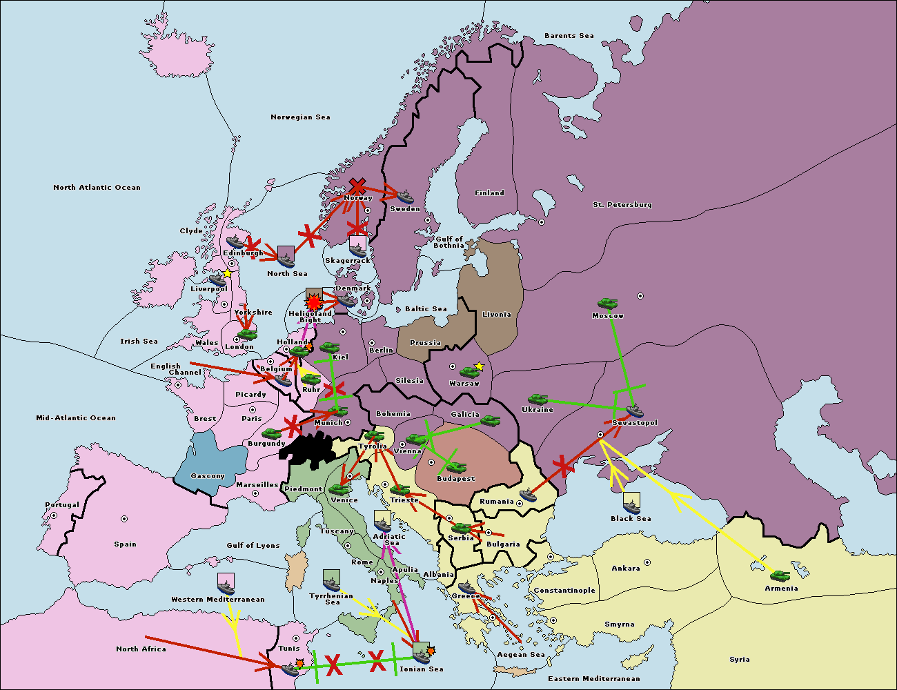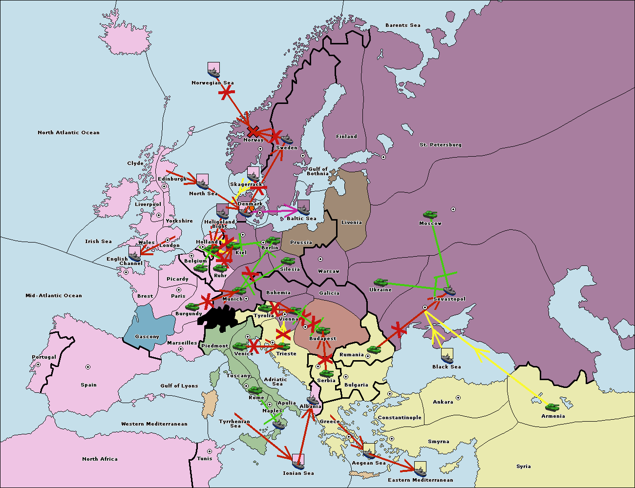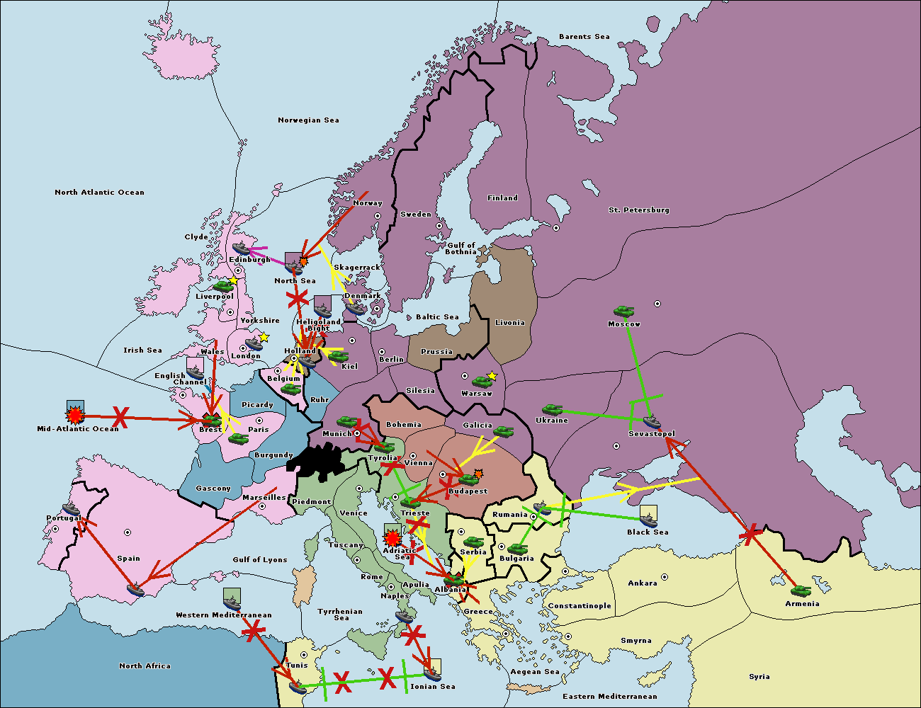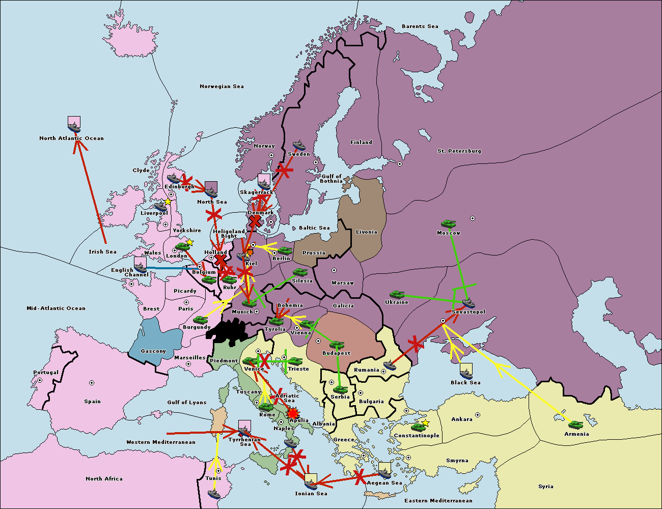 The fleet at Rumania support move to Sevastopol from Armenia.