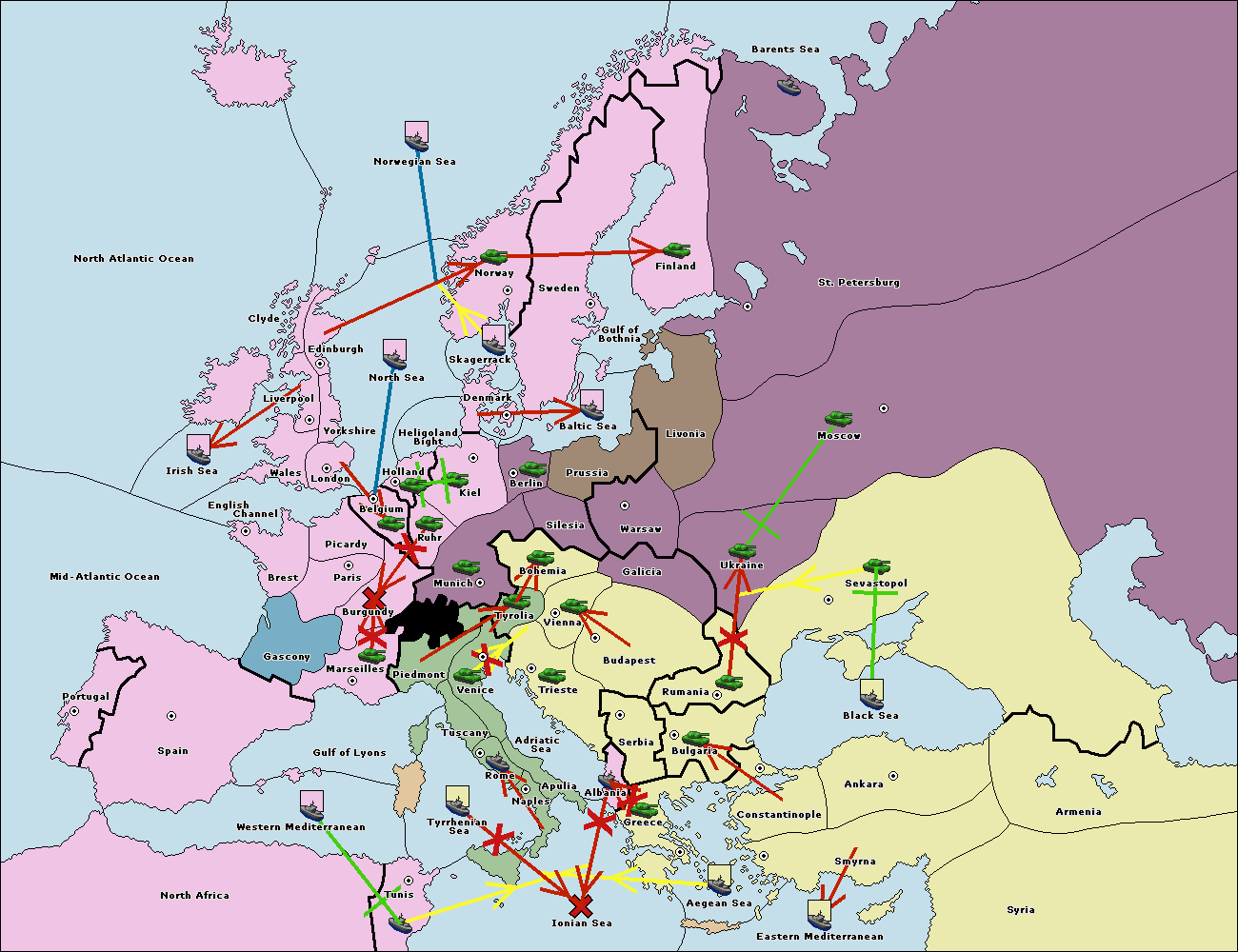 The fleet at Tyrrhenian Sea support move to Naples from Ionian Sea.