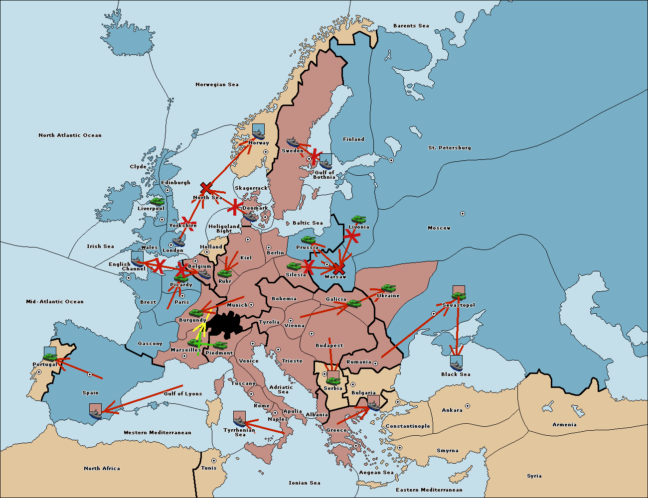 The fleet at Greece move to Bulgaria (South Coast).