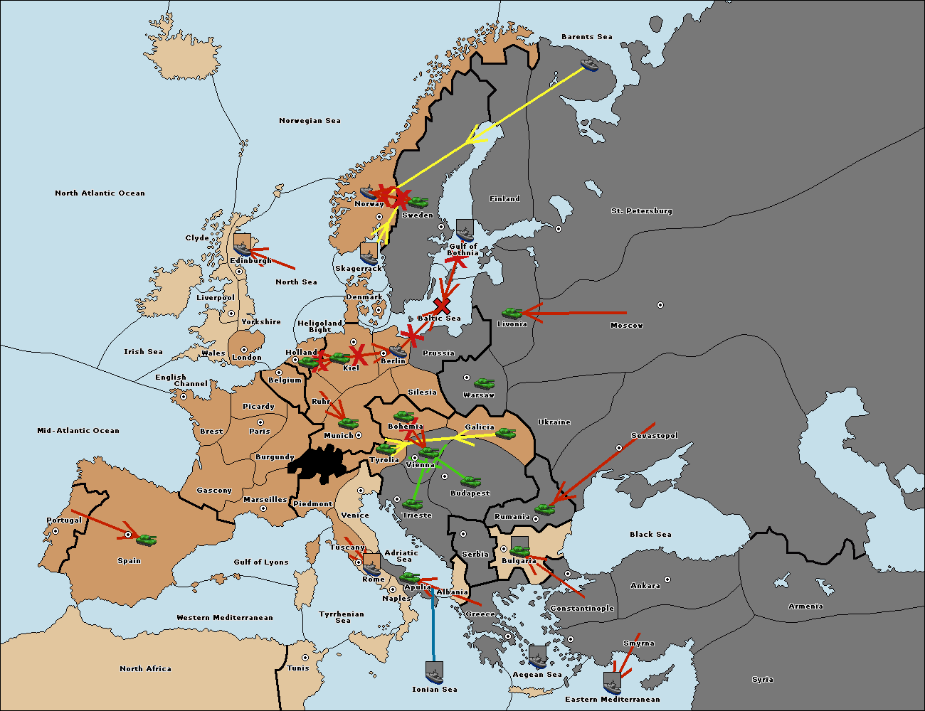 The fleet at St. Petersburg (South Coast) move to Livonia.