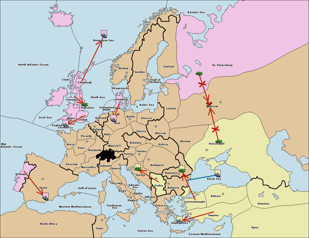 The fleet at Bulgaria (North Coast) move to Black Sea.