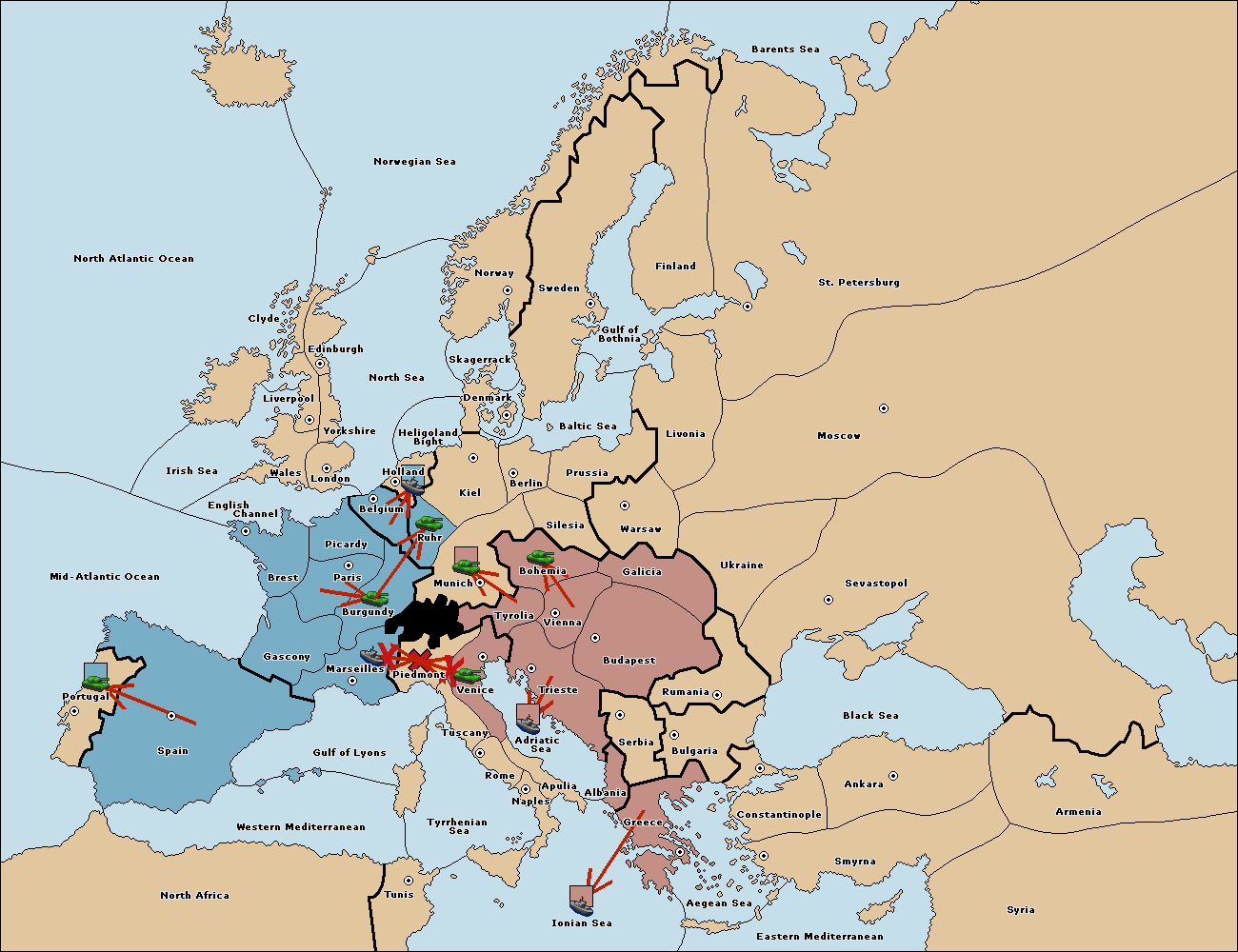 The army at Tyrolia move to Munich.