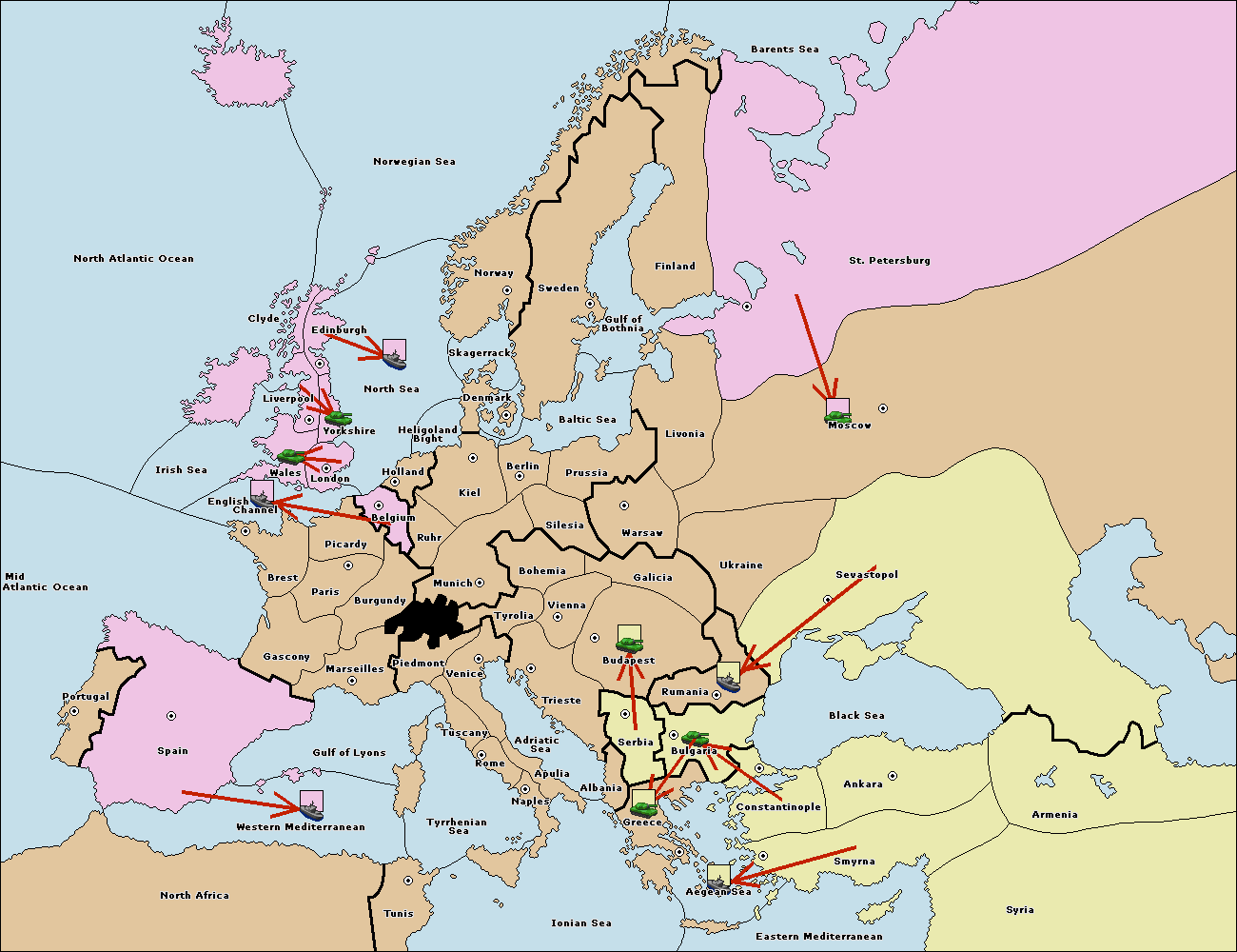 The fleet at Mid-Atlantic Ocean move to Western Mediterranean.
